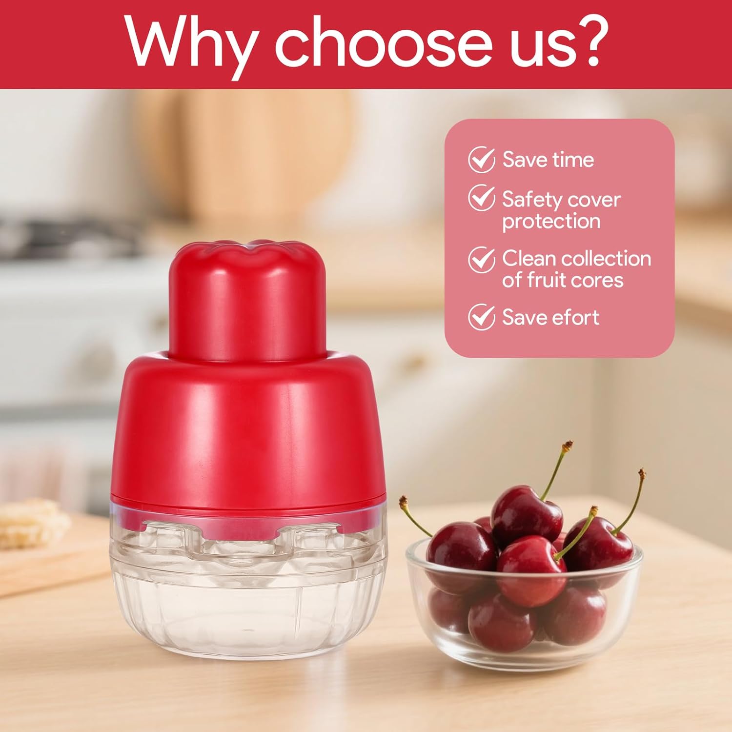 【7-In-1】With our 7-in-1 cherry pitter is a good corer tool kitchen, you can easily remove the pits of up to 7 cherries at a time, efficiently and easily