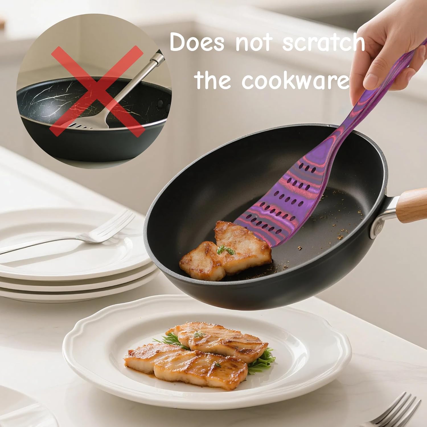 『Built to Last』Pakkawood is one of the hardest woods. It is not easy to break or scartch. The cooking spoons remain beautiful and sturdy over time and stay friendly to your non-stick cookware.