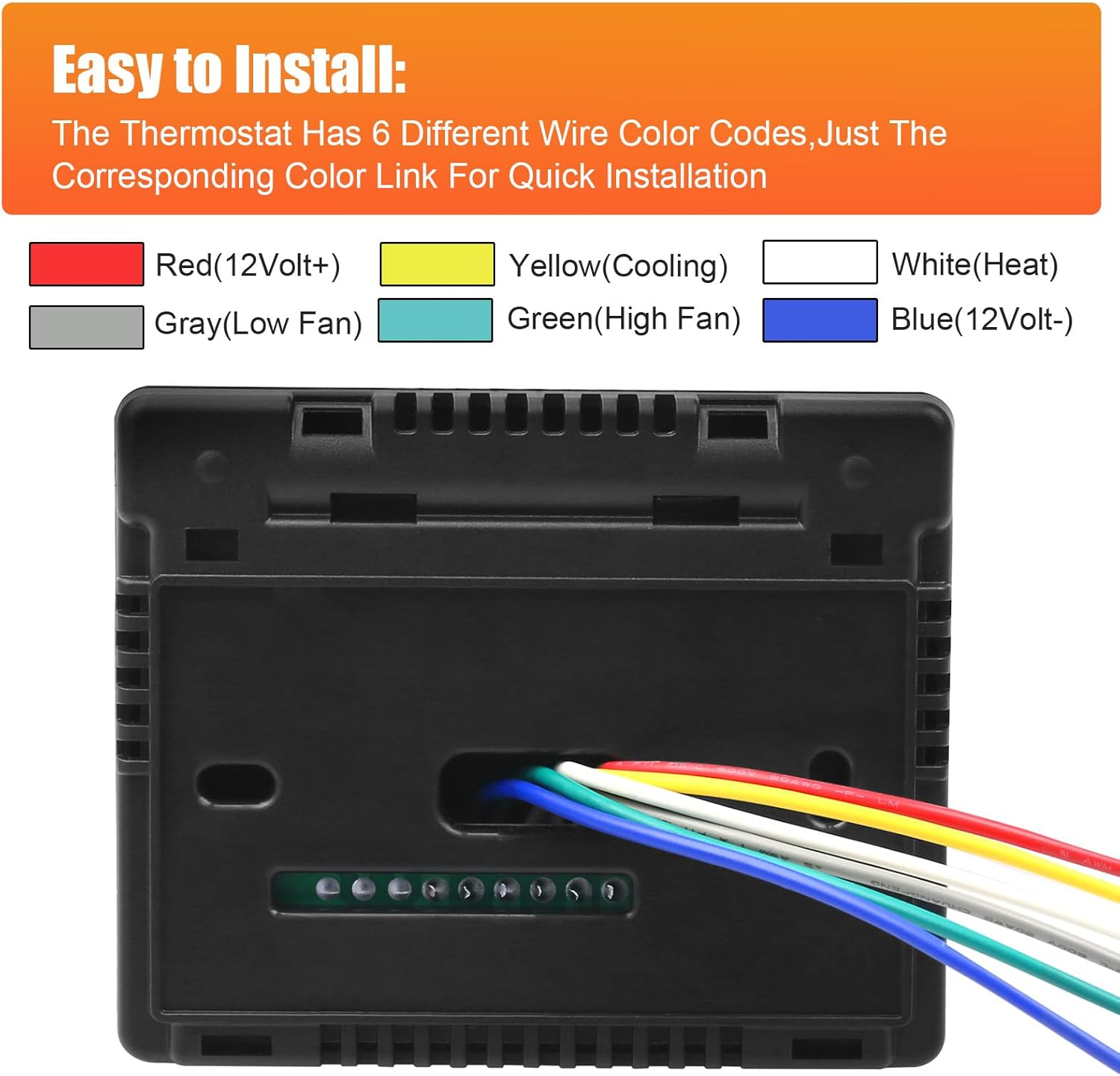 Installing this thermostat is a straightforward process, thanks to its six color-coded wires and detailed wiring instructions. Simply match the wire colors and follow the original wiring pattern for a quick and secure setup. (Remember to disconnect power before installation for safety)