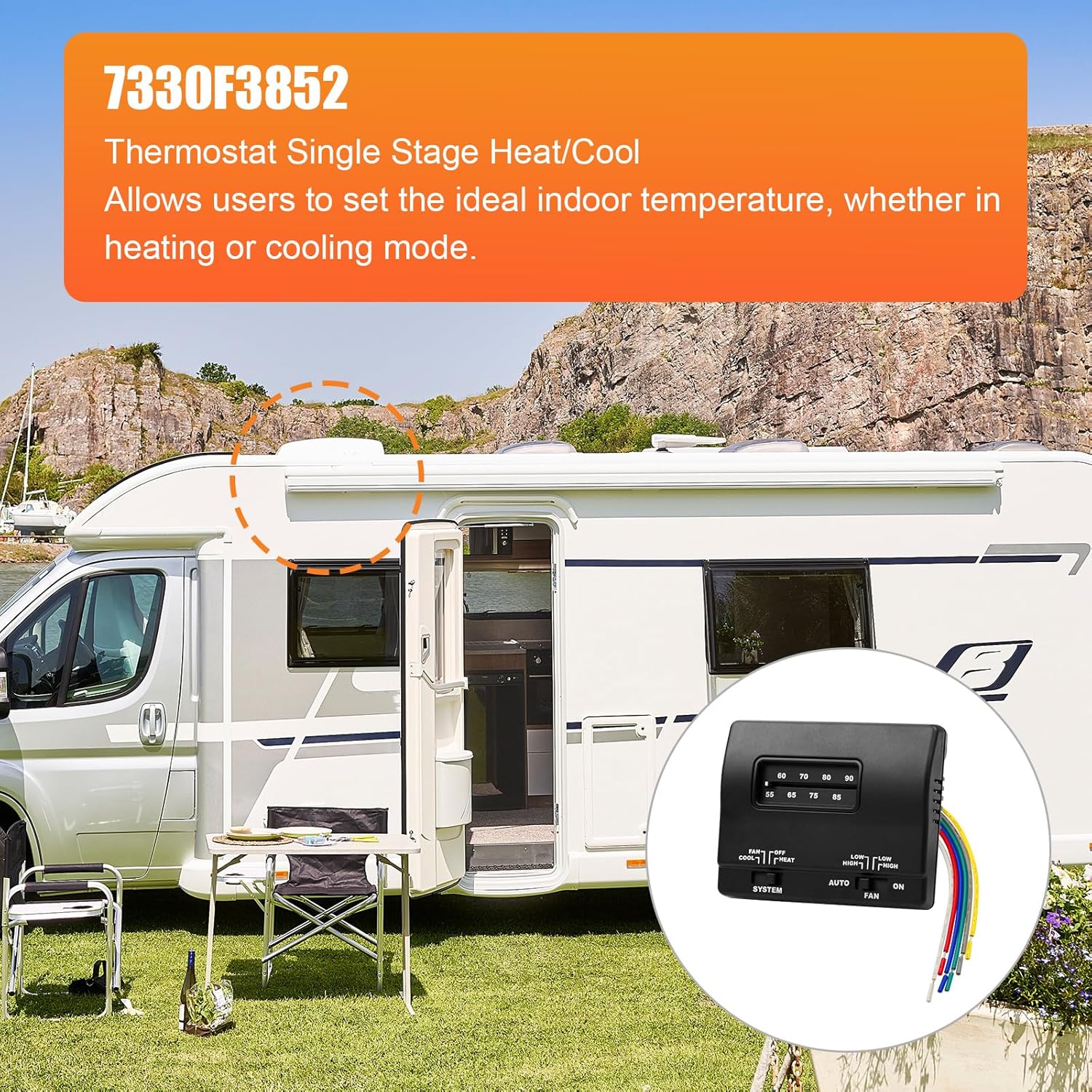 Durable and Reliable Construction:Crafted from high-quality materials, this thermostat is built to withstand the rigors of RV travel. Whether you’re on a cross-country road trip or a weekend getaway, the 7330F3852 thermostat delivers long-lasting performance and reliability, ensuring your comfort in various conditions