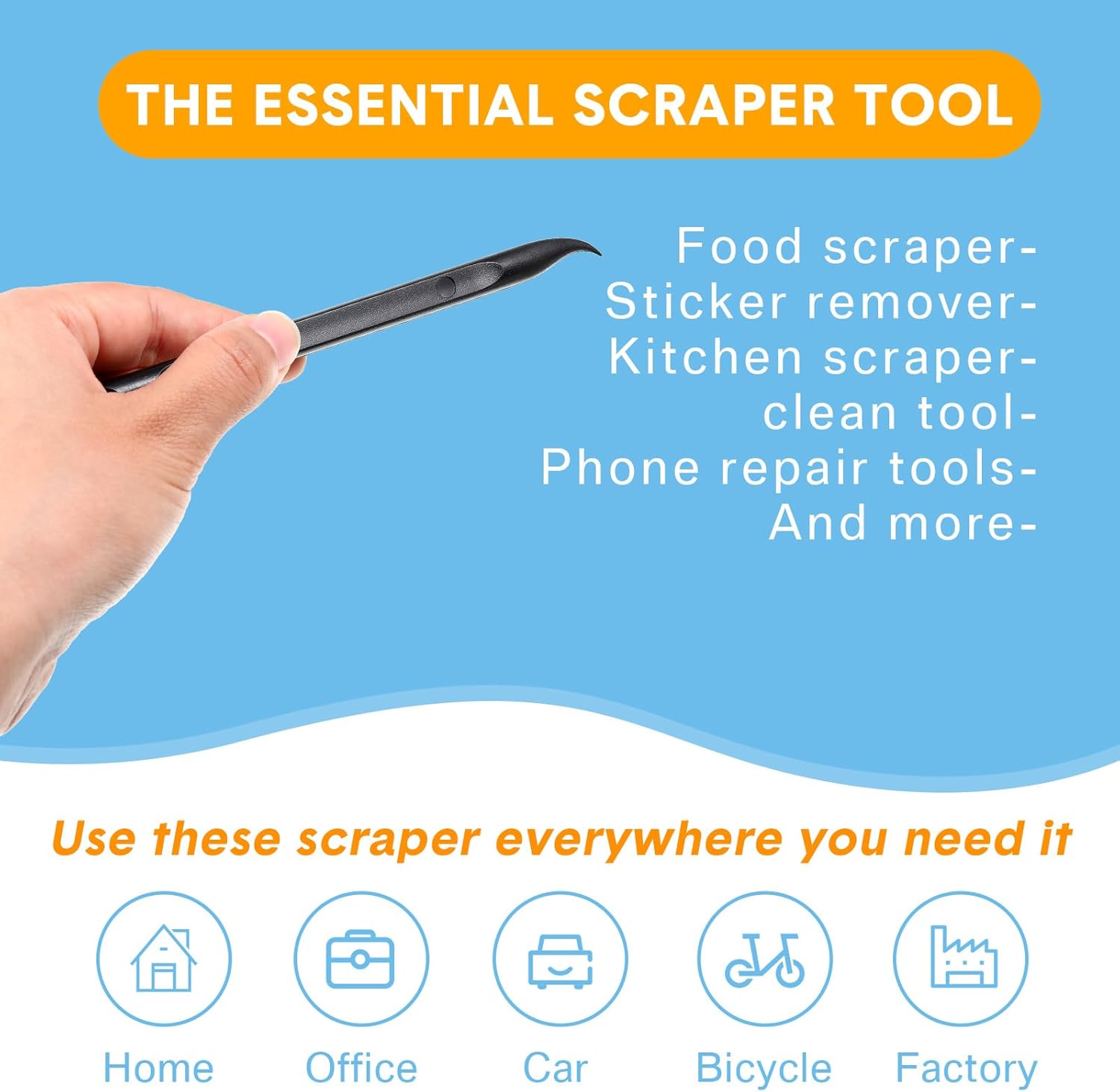 Wide applications: this plastic scraper tool is ideal for cleaning crevices, while protecting your nails; They are also suitable for removing label stickers, grease, paint, candle wax, dirt, soap, dried foods, ticket and more on kitchen, car, bathroom, office, motorcycle, boat, workshop, garage; It can also be applied as a pry open electronic repair tool for LCD, tablet