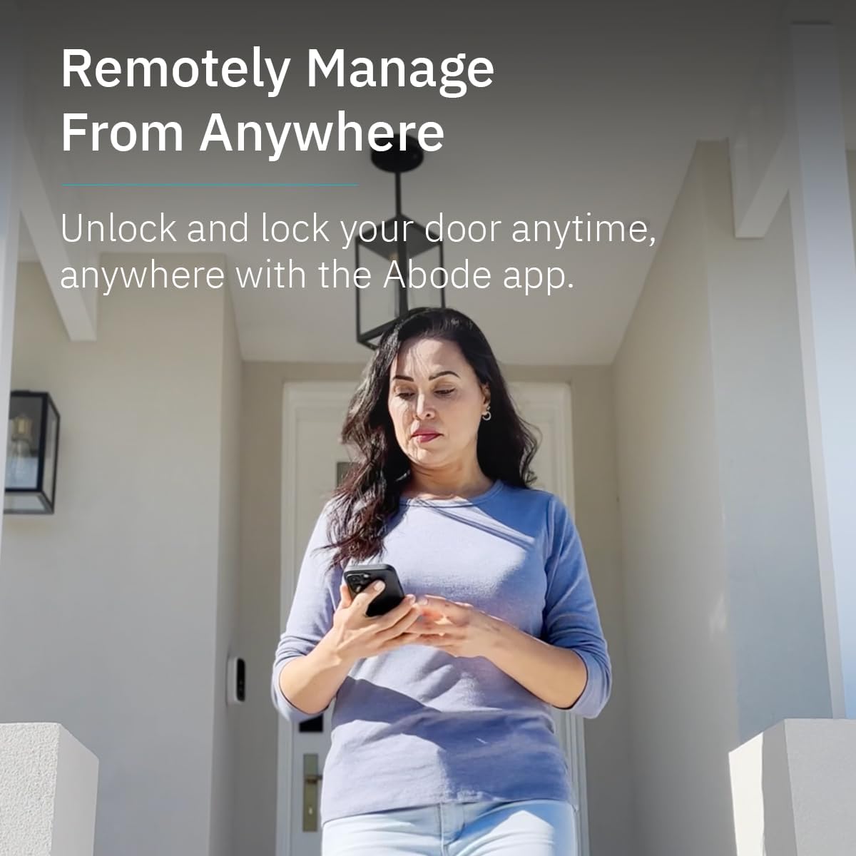 REMOTELY MANAGE FROM ANYWHERE: Unlock and lock your door anytime, anywhere with the Abode app. Monitor and manage your lock’s status remotely, ensuring peace of mind wherever you are. Enjoy fingerprint access for effortless, code-free entry for permanent residents. Create customizable key codes, including permanent, single-use, and time-specific codes for added security. With multiple access options including Bluetooth keypad, fingerprint, and mobile app, you have flexible control over who can enter your home.