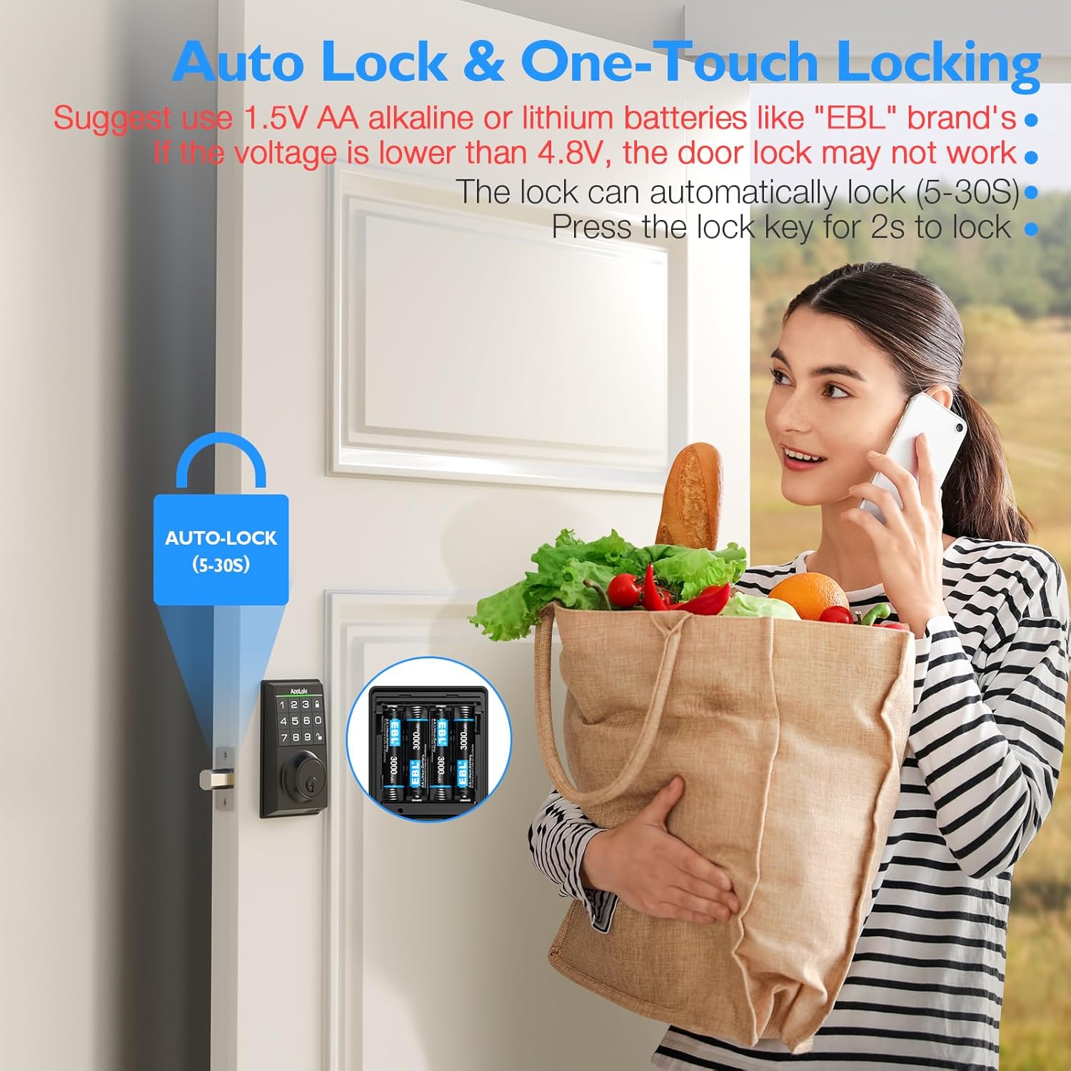 Aibocn Electronic Keypad Deadbolt Door Lock , Auto Lock, Keyed Entry Option, Contemporary, Anti-Peeping,1-Pack