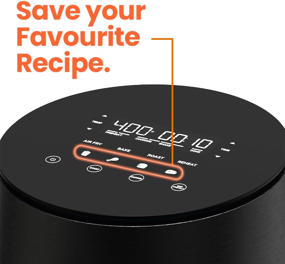 ULTIMATE CONTROL: Includes simple time and temperature controls, plus 8 pre-programmed cooking functions; Air Fry, Bake, Roast, Reheat, Fries, Chicken, Burger, Steak