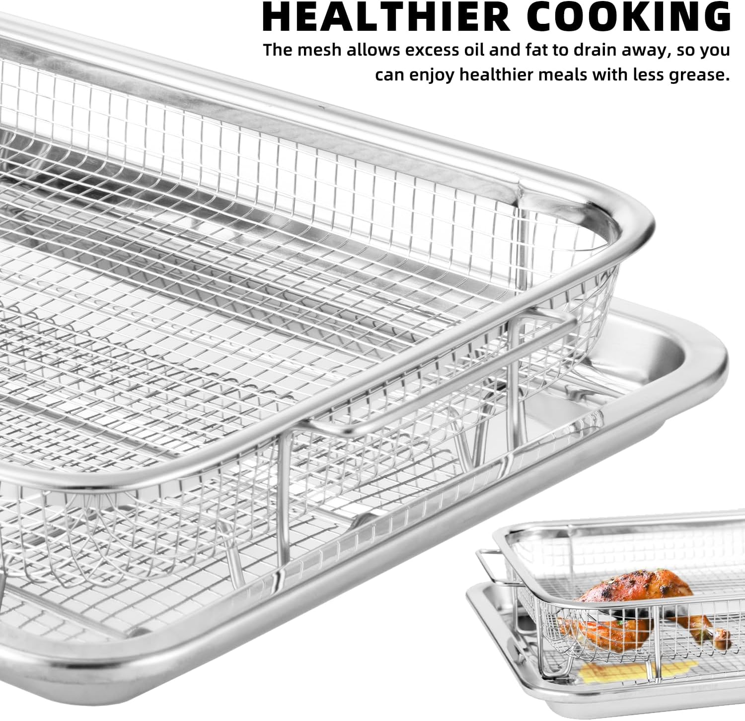 Healthier Cooking: Made from durable stainless steel, this air fryer basket for oven resists high temperatures and corrosion, ensuring a safer cooking experience. The mesh allows excess oil and fat to drain away, so you can enjoy healthier meals with less grease.