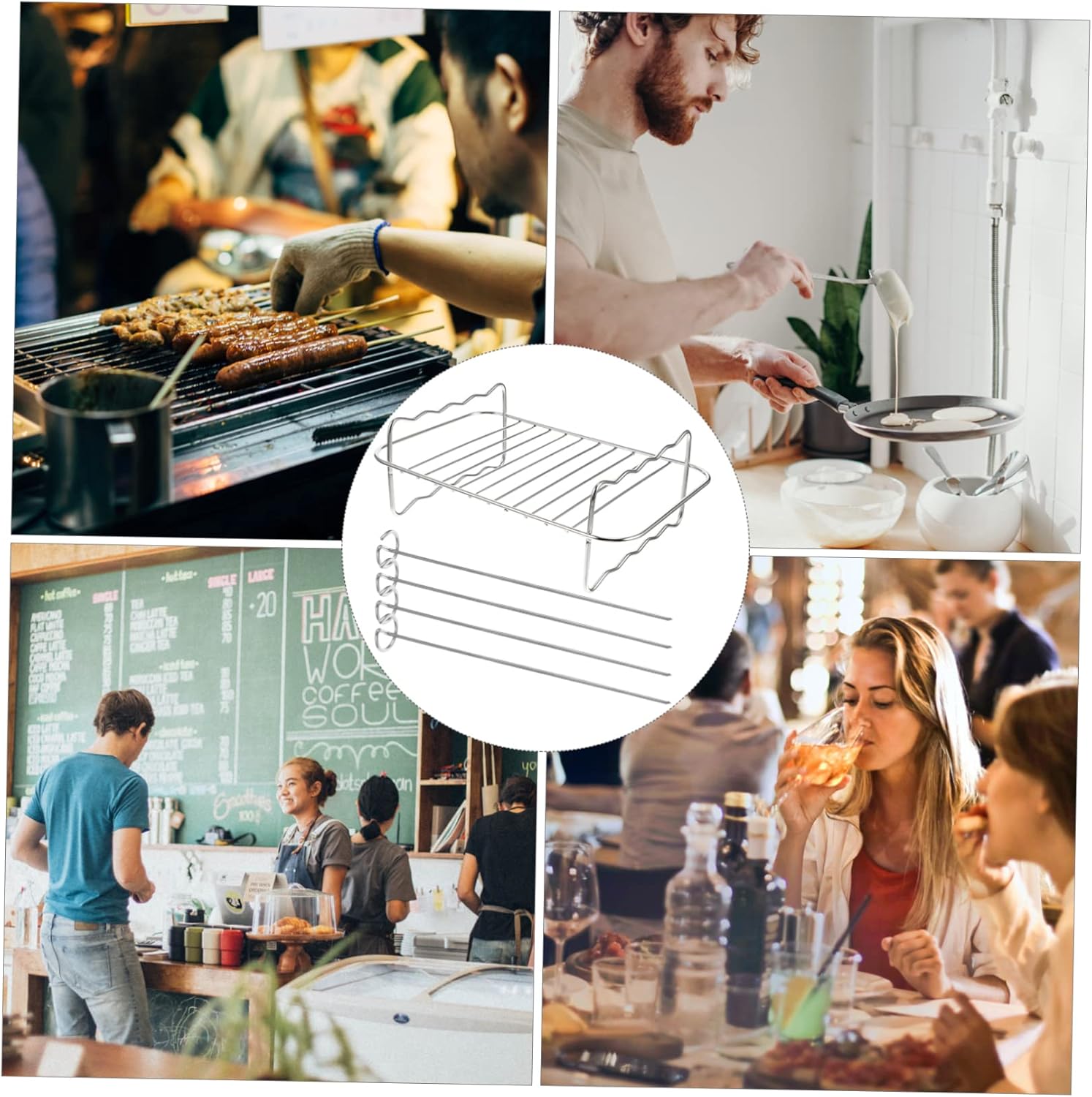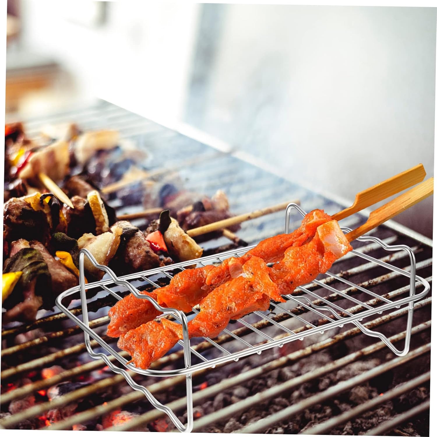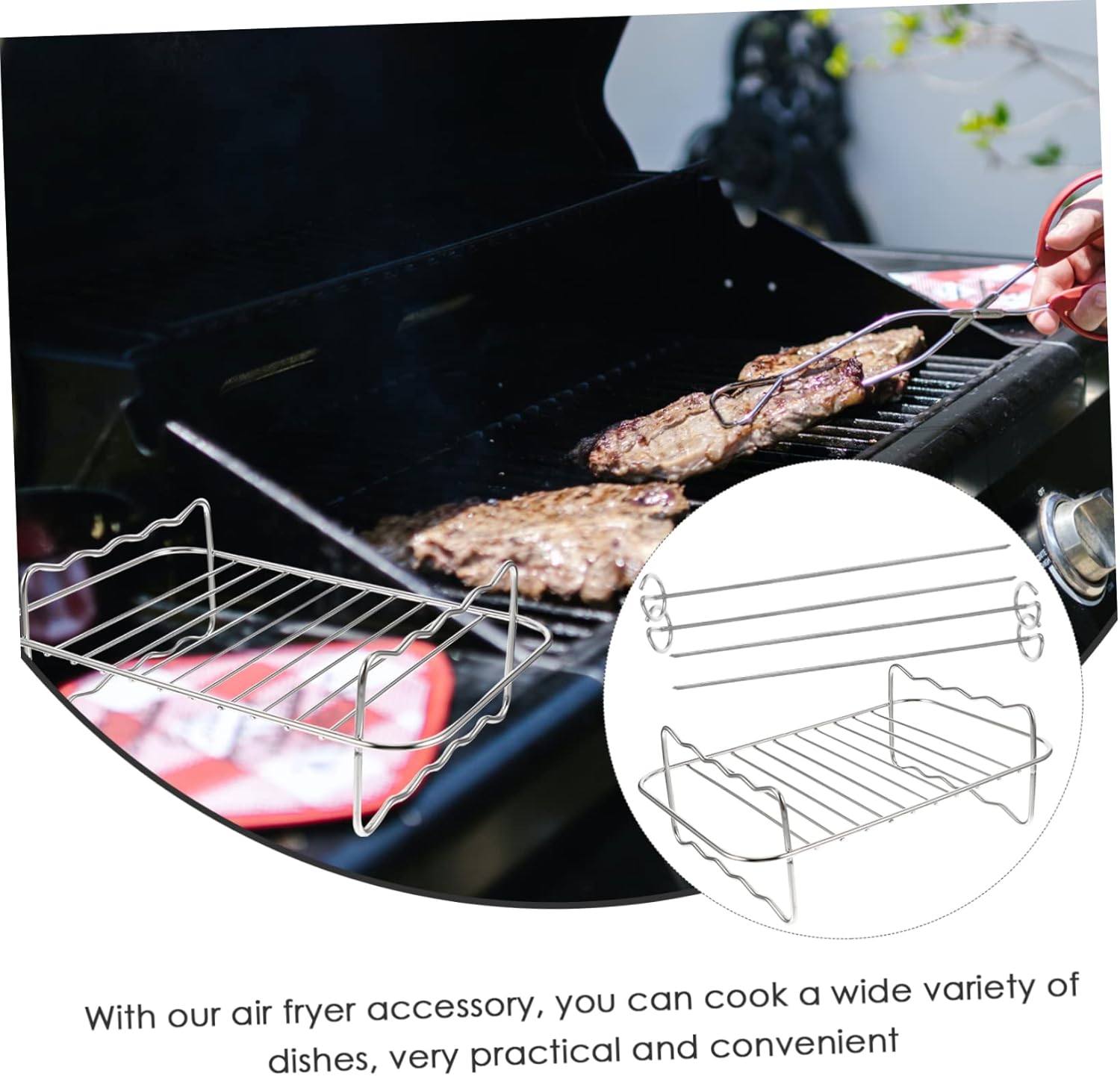-Material:Stainless steel air fryer kebab rack