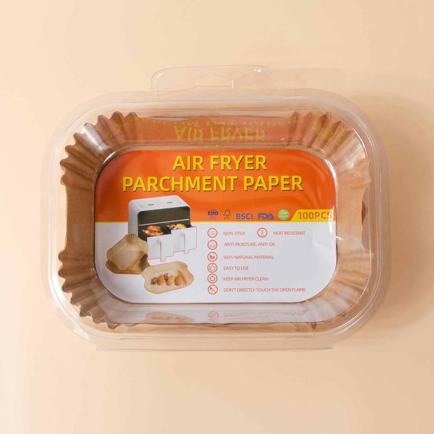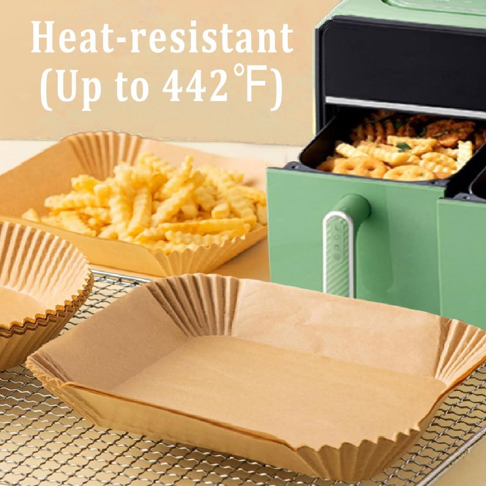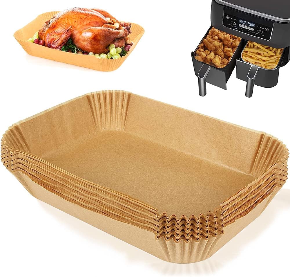 【Heat Resistant & For Rectangular or Dual Air Fryer】Capable of withstanding temperatures up to 446°F (230℃), the parchment papers are designed to ensure safe and effective cooking, Parchment paper of 8.6×5.5 inch at bottom is intended for air fryers double basket with a total capacity of 8 to 10 quarts; Fit Ninja DZ201, DZ401, DZ550, SL401, DZ071, and other dual air fryers.