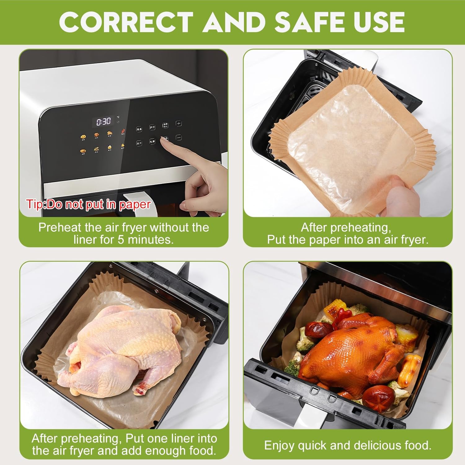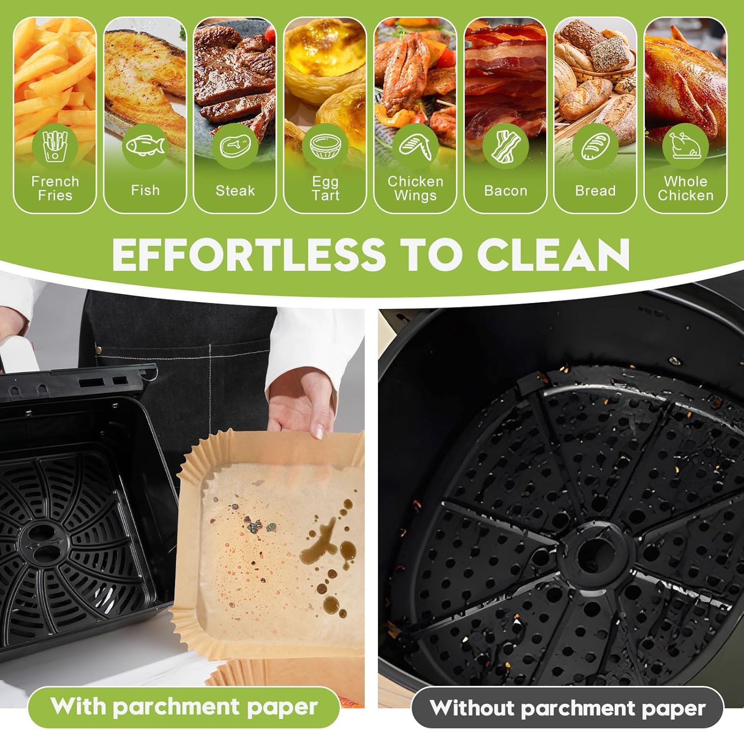 Cleanup is easier:Disposable air fryer liners make you feel free to clean the basket and make your cooking easier.No more scrubbing and scratching.Try them today and transform your air frying experience — your air fryer will thank you!