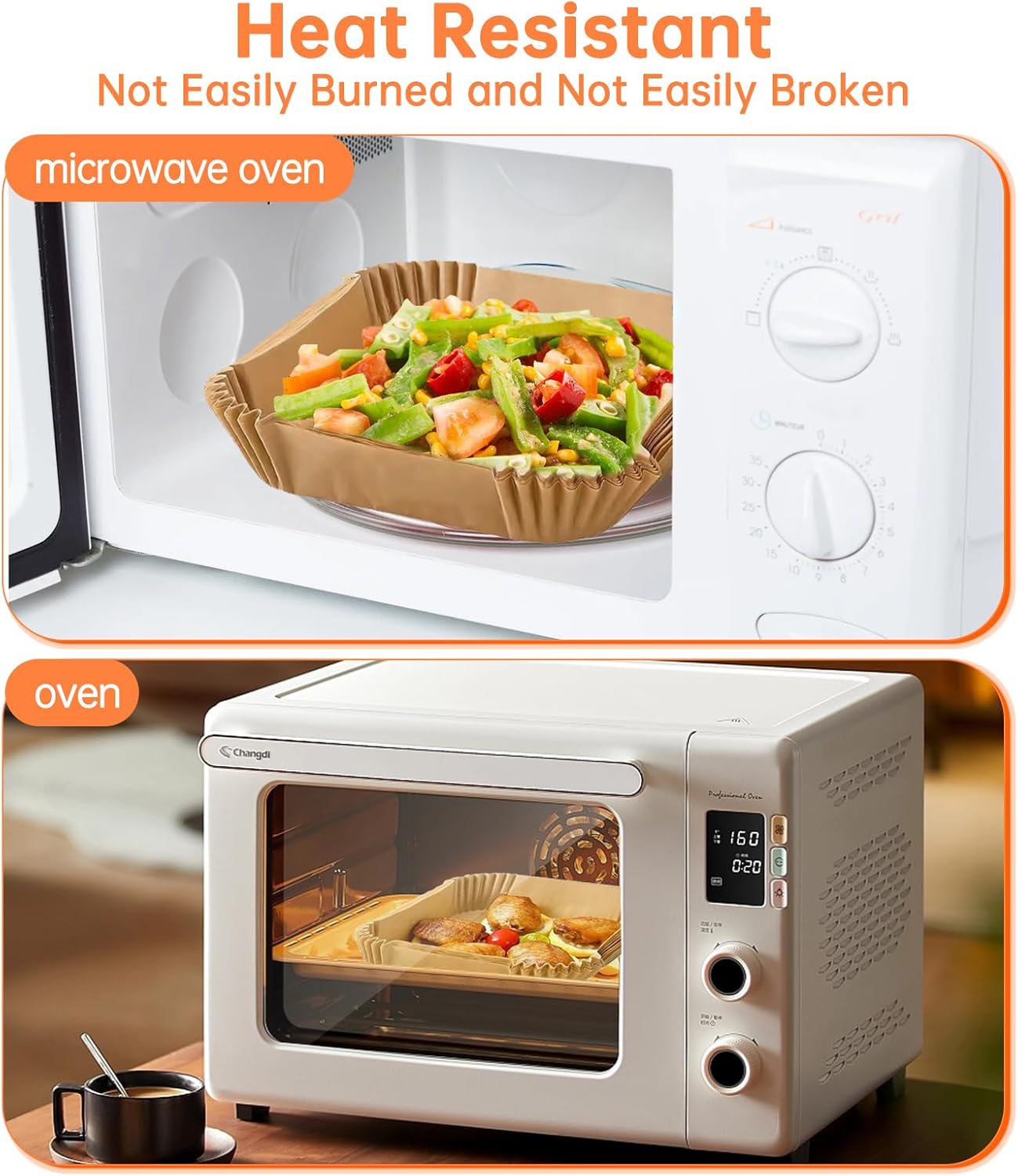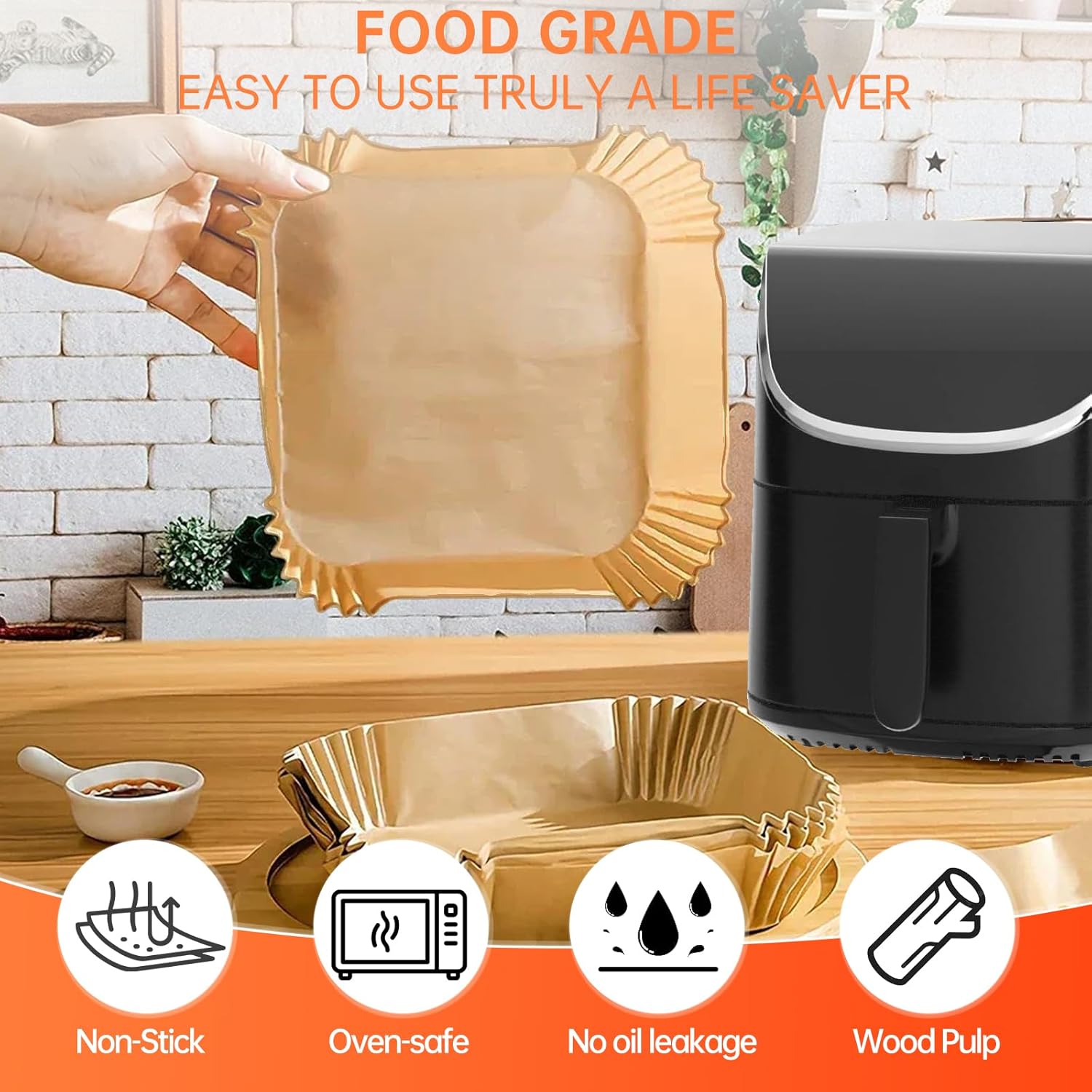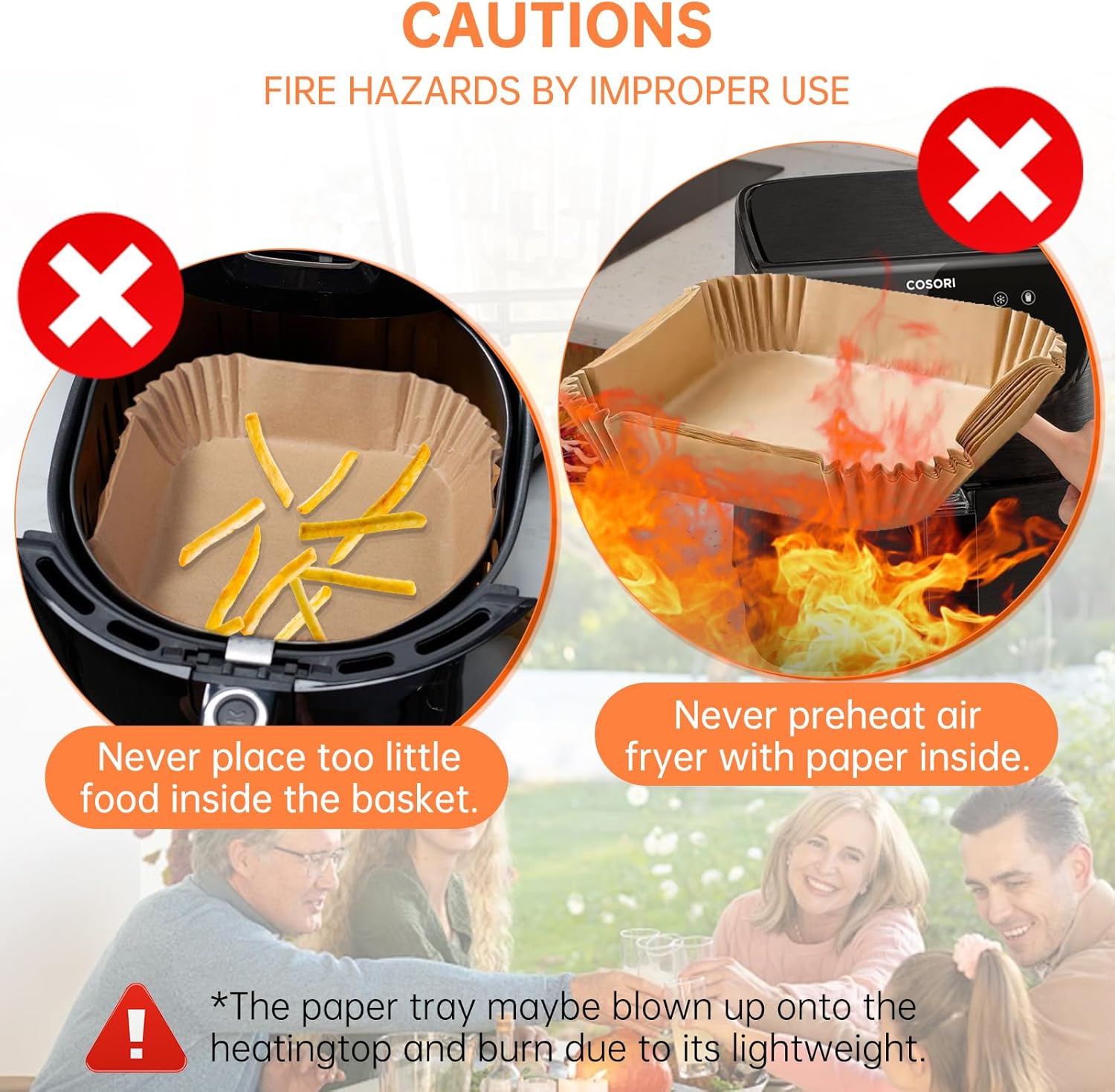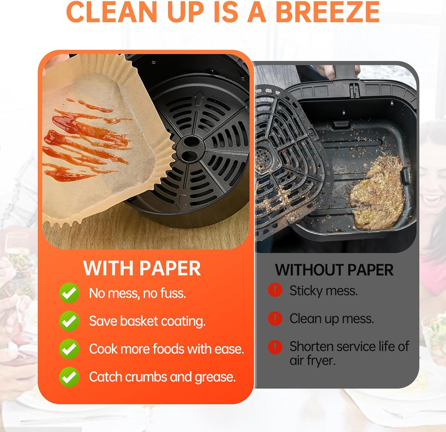 Food Grade Material: This air fryer liners disposable compatible with gourmia is made from food – grade wood pulp with a silicone oil coating, non – toxic and healthy, Heat – resistant up to 428°F (220°C)