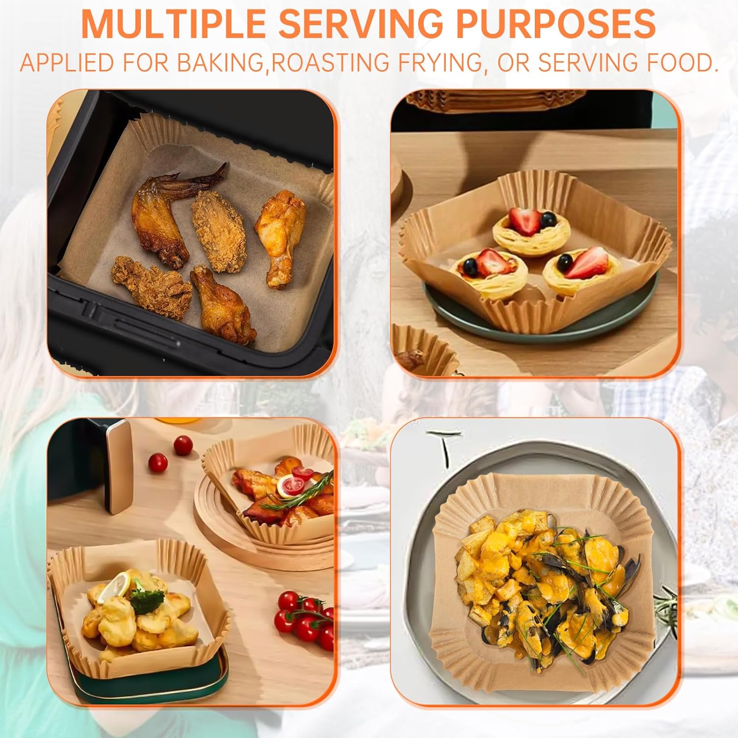 Versatile Use: These air fryer liners disposable can be used in microwaves, ovens, steamers, air fryers for baking, roasting, frying. Ideal for camping, home baking, barbecues, and summer gatherings