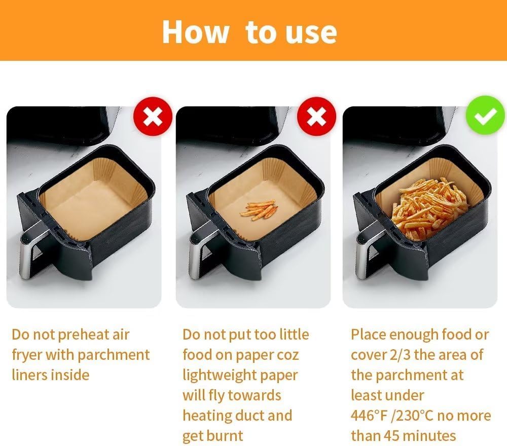【Provide Better Product 】 we provide better quality pulp with 45Gsm to assure our air fryer disposable paper liner thicker ,flatter and sturdier( no broken ,no curl),125pcs in one pack , but price close to other supply of 100pcs