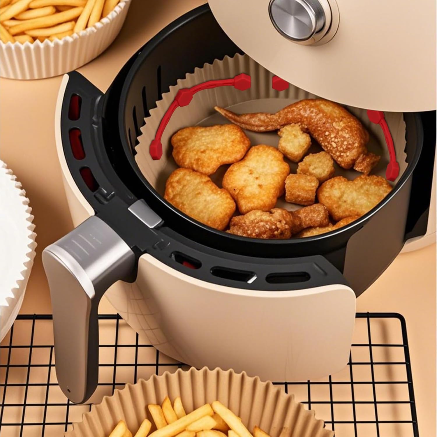 Magnetic Easy Fixation: The air fryer magnet silicone buckle has a built-in magnet design that easily attaches to the edge of the fryer; it has a stable adsorption force that can hold the paper in place during the entire heating process