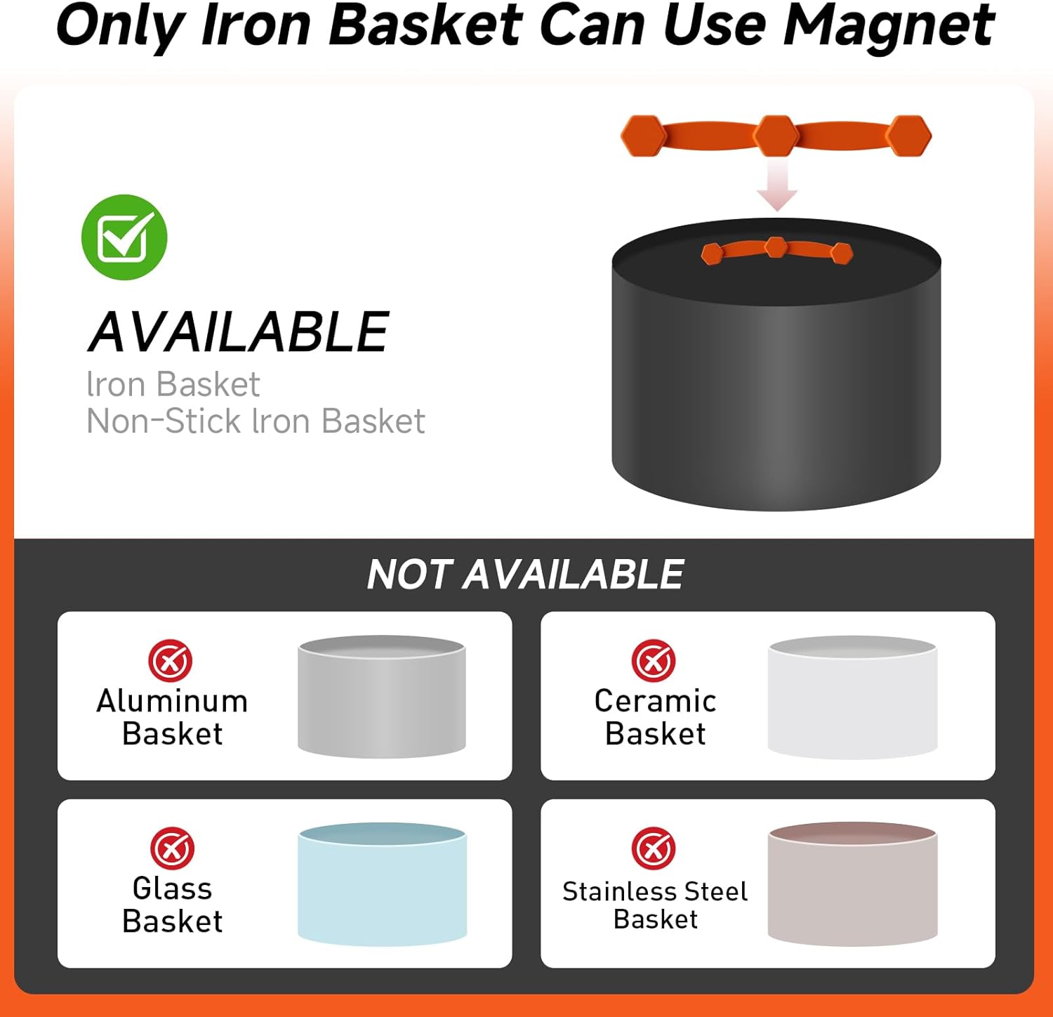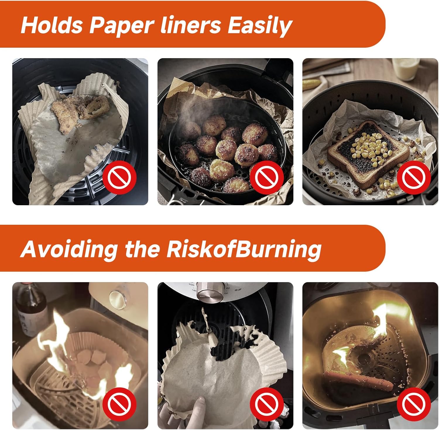 Secure Fixation Technology: Premium silicone magnet clips lock air fryer parchment liners firmly in place,preventing paper from lifting or blocking airflow. Ensures even cooking and eliminates fire risks by keeping liners away from heating elements.