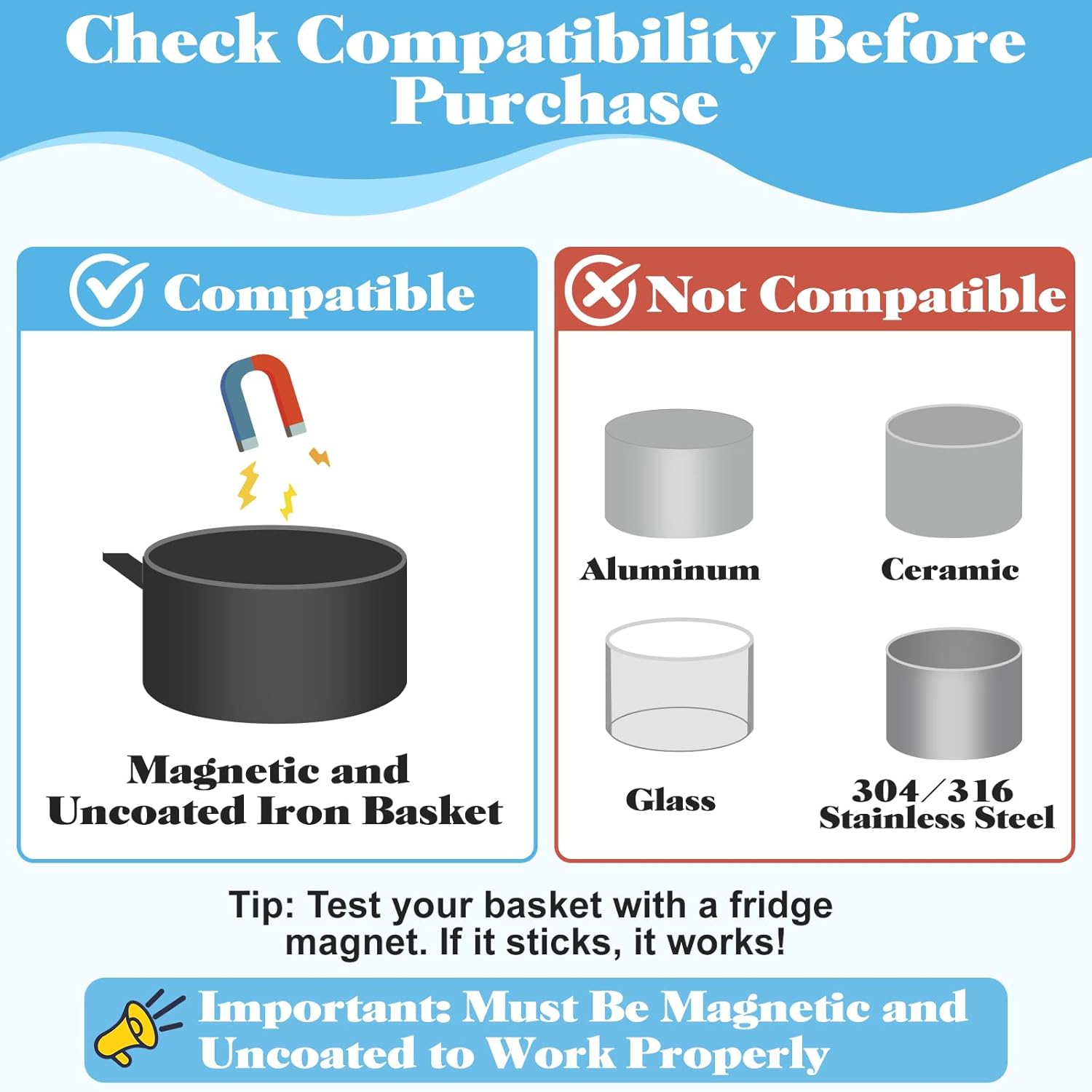 【Check Your Air Fryer for Compatibility】These silicone magnetic clips are designed to work with most air fryer baskets, as long as the surface is magnetic and uncoated. Not sure if it’s compatible? Just test your basket with a fridge magnet – if it sticks, you’re good to go!
