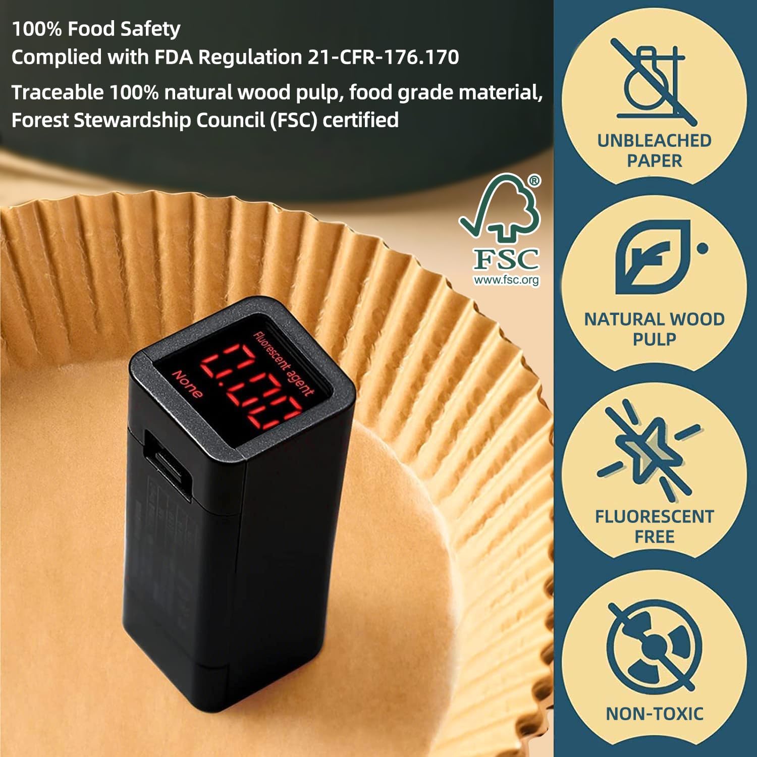 Food Grade Airfryer Accessories – HONYAO air fryer paper liners are made of food grade parchment paper and silicone oil 100% healthy and heat-resistant, BPA free, waterproof, oil-proof, and non-stick. Our Air fryer paper liners can withstand temperatures up to 428 °F (220 °C) while retaining the flavor of the food.