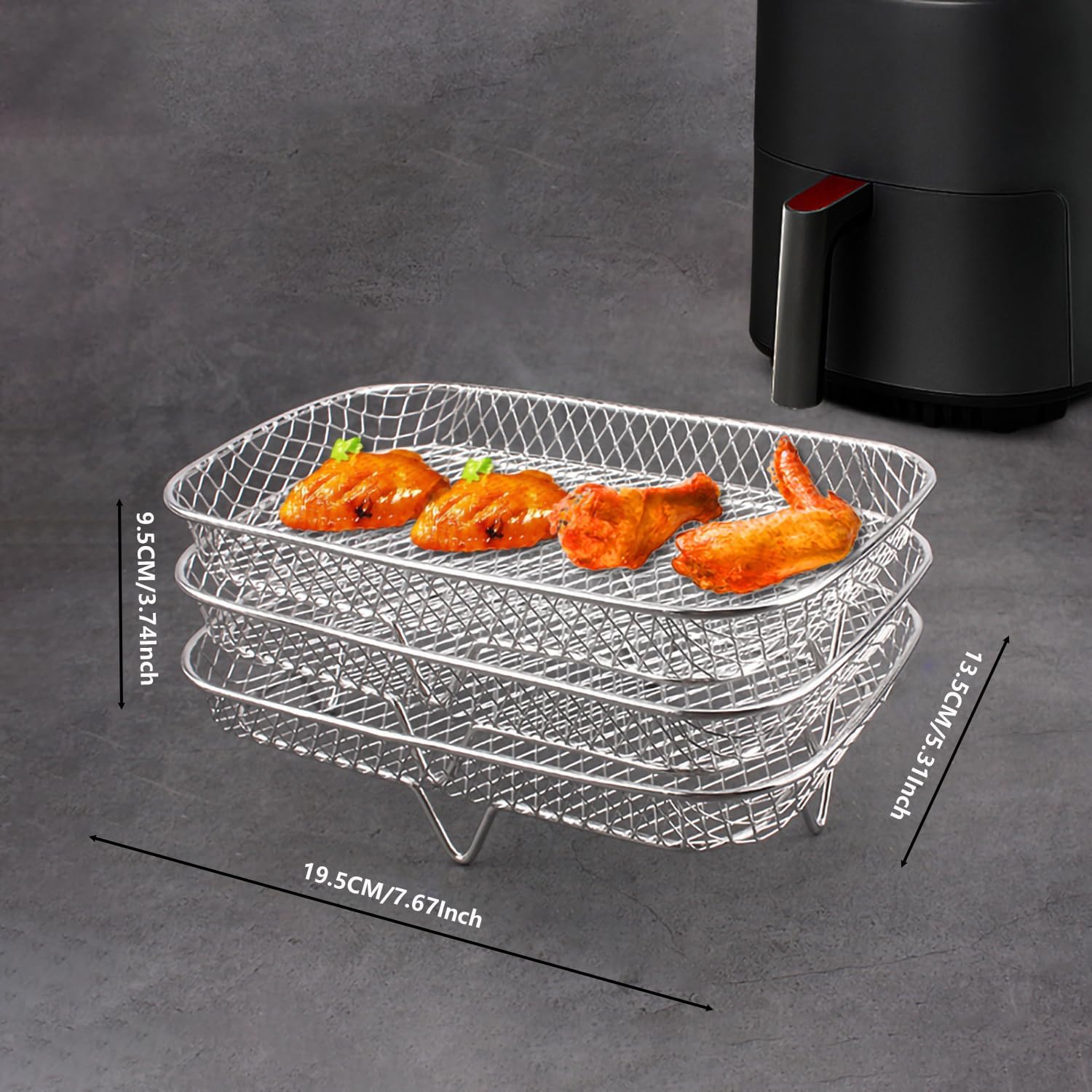 Air Fryer Rack, Stackable Stainless Steel Air Fryer Basket, 3 Layers Dehydrator Rack for Oven Press Cooker, Rectangle AirFryer Accessories (7.6″Lx5.3″Hx3.7″H)