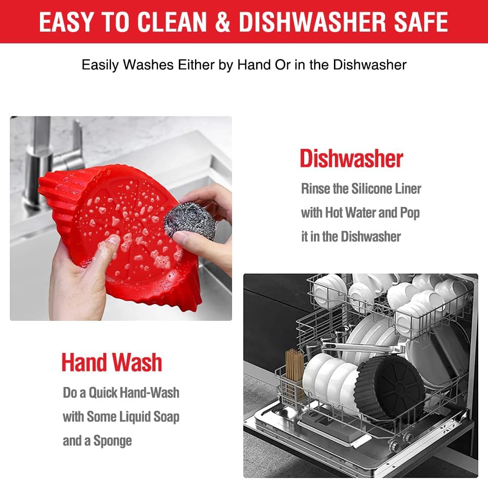 Easy To Clean & Dishwasher Safe: No more cleaning the air fryer basket, making you more willing to use the air fryer and enjoy cooking more. No more soaking food after cooking with non-stick silicone inserts. Cleanup is a breeze, just toss these silicone inserts in the dishwasher or wash by hand. Keep your air fryer free from grease and food residue and extend the life of your air fryer