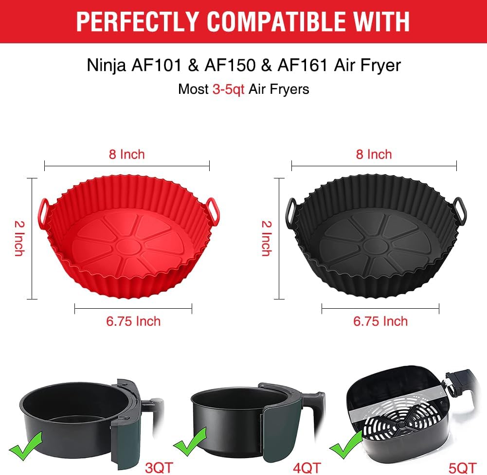 Must Have Air Fryer Accessories: Xabzhzn 2 Pack Silicone Air Fryer Liners. Perfectly compatible with Ninja AF101 4qt air fryer, Ninja AF161 5.5qt Max XL air fryer, Ninja AF150 5.5qt air fryer XL, Ninja AF141 5qt Air Fryer, for COSORI 4qt 5qt air fryer, for Gourmia 4qt 5qt air fryer, for Fabuletta/PowerXL/InstantPot/Phillip 4qt air fryer, for Ultrean 4.2qt 4.5qt air fryer, for GoWISE 3.7qt air fryer, for LATURE 4.2qt air fryer, for Chefman 3.6qt 3.5qt 3.7qt air fryer,and most 3 to 5 qt airfryers