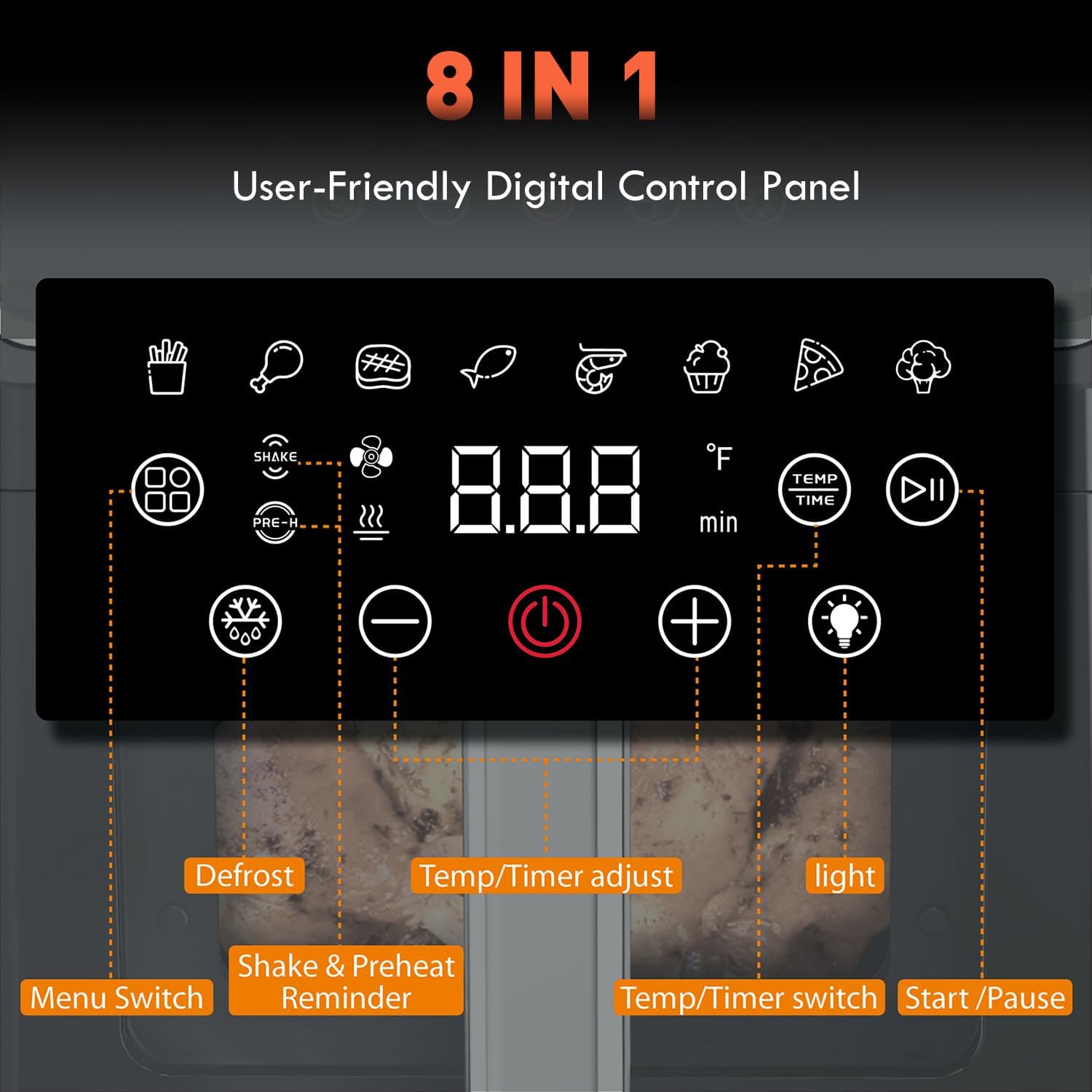 8-in-1 Versatility with Intuitive 45° Touch Panel: Enjoy 8 versatile cooking presets for all your favorite dishes. The 45° ergonomic touch panel ensures sensitive and precise control, while the advanced temperature system guarantees perfect results every time (160℉ to 450℉), enhancing the flavor and texture of your meals.