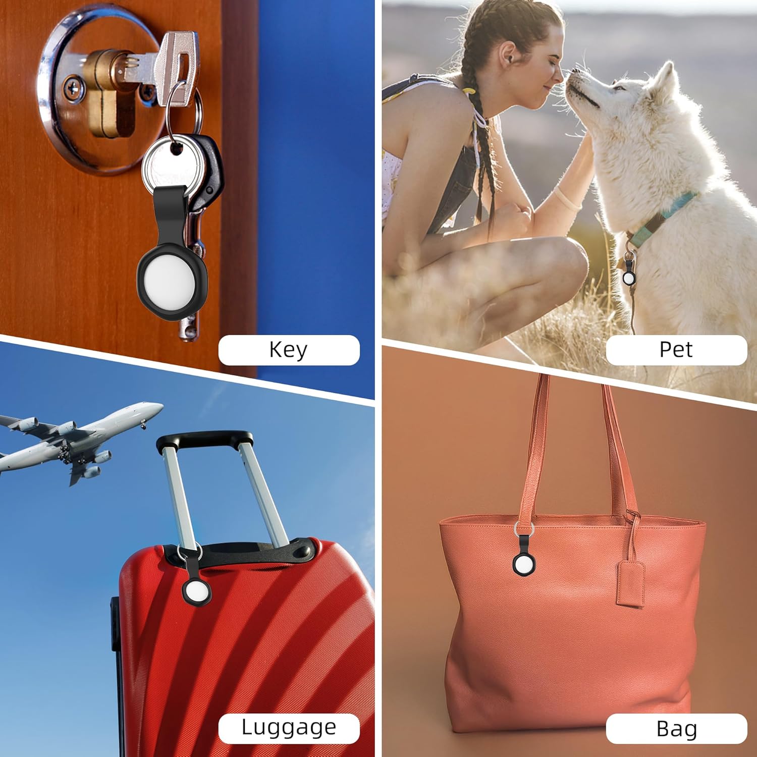 Air Tags with Waterproof Case,Item Finder Works with Apple Find My (iOS only) Bluetooth Smart Tracker Tags for Keys, Luggage, Wallet, Pets & Backpack, Replaceable Battery (Black Case, 1 Pack White)