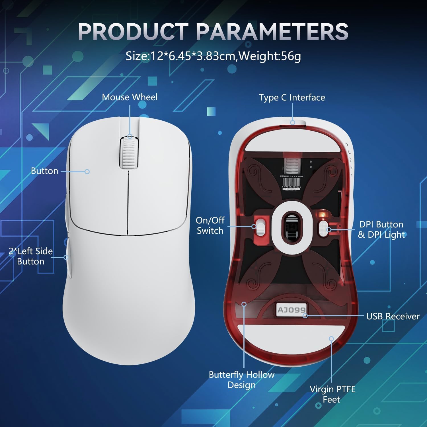 【Cutting-edge Comfort & Symmetrical Ergonomics】The symmetrical AJ099 is anti-sweat and easy to grip. Feets are made by 100% pure PTFE, significantly reducing friction and allowing for a smoother glide. Durability and performance with an extremely comfort ergonomic design, which can significantly reduce the wrist fatigue on your palm, wrist, arm caused by prolonged use.