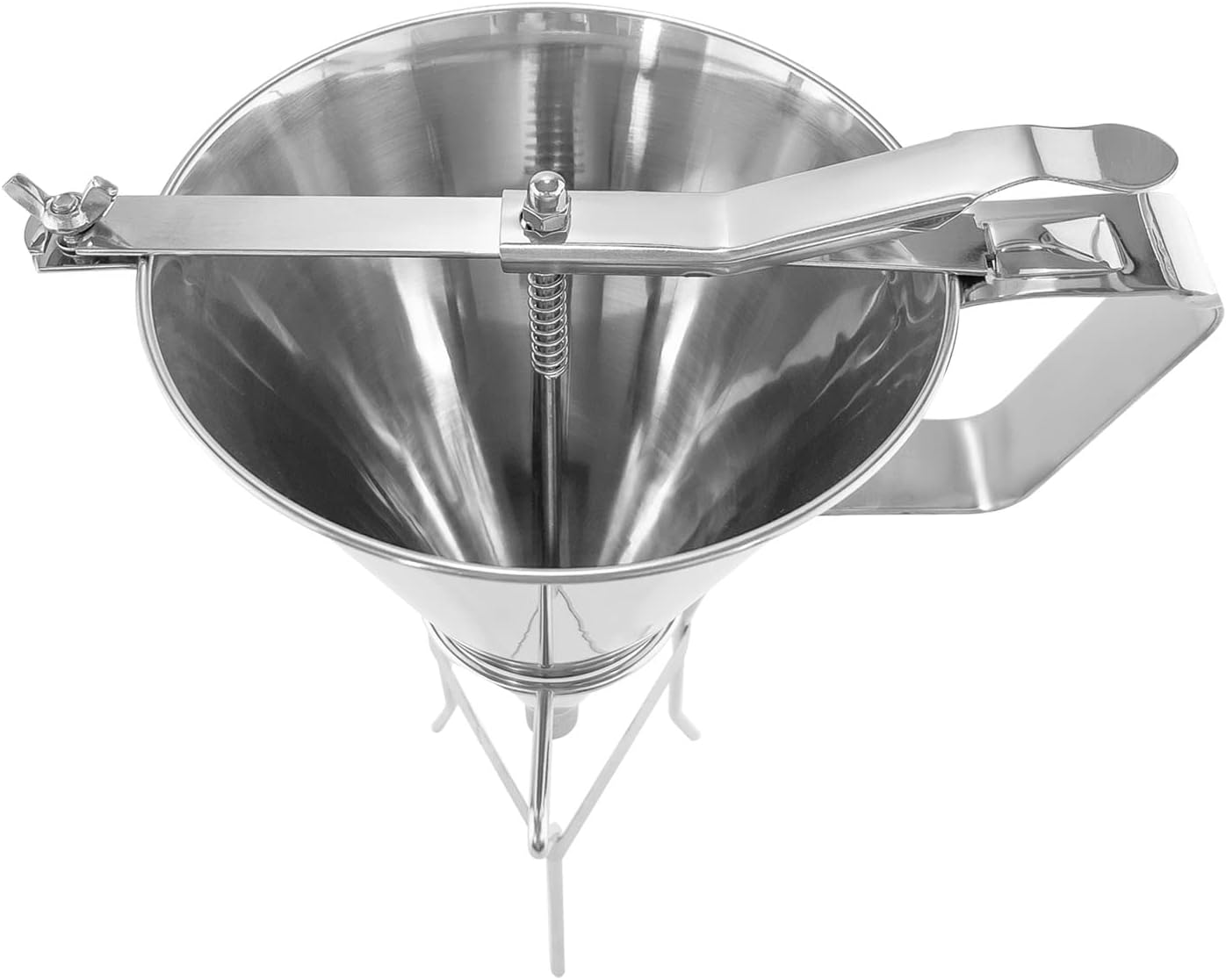 Model: AC_1010Material: stainless steelSize: funnel diameter 175 mm (9.89”), tall 225 mm (8.85″), tall with the stand 295 mm (11.61″) Three nozzle size opening 4 mm (0.16″), 5 mm (0.20″), 5 mm (0.24″)Weight: 1 kg (2 lbs)