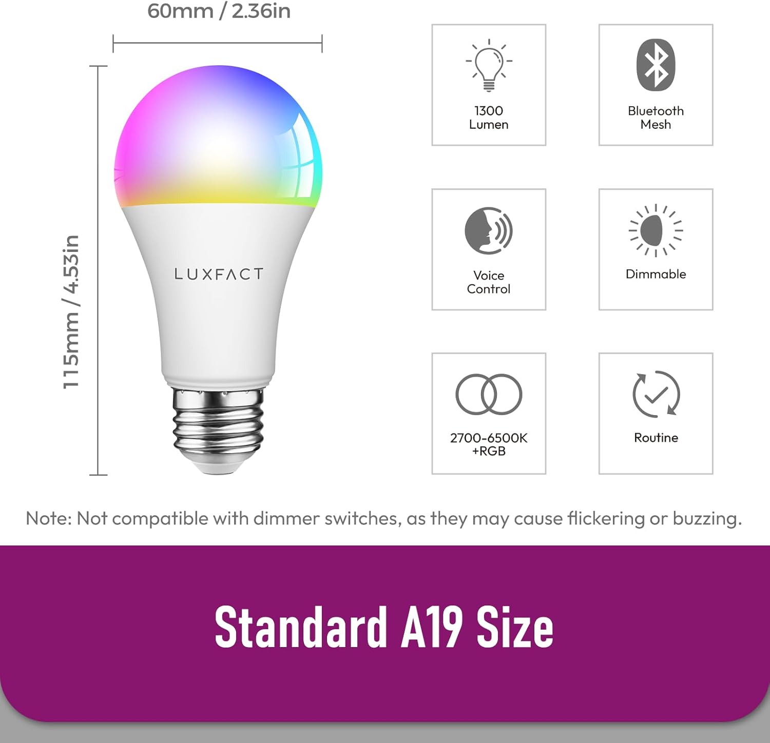 Advanced Bluetooth Mesh Technology: The latest Bluetooth Mesh technology enables seamless communication between LUXFACT Bluetooth light bulbs, ensuring faster response, greater range, and more stable performance throughout your home. Enjoy smooth, synchronized lighting control.