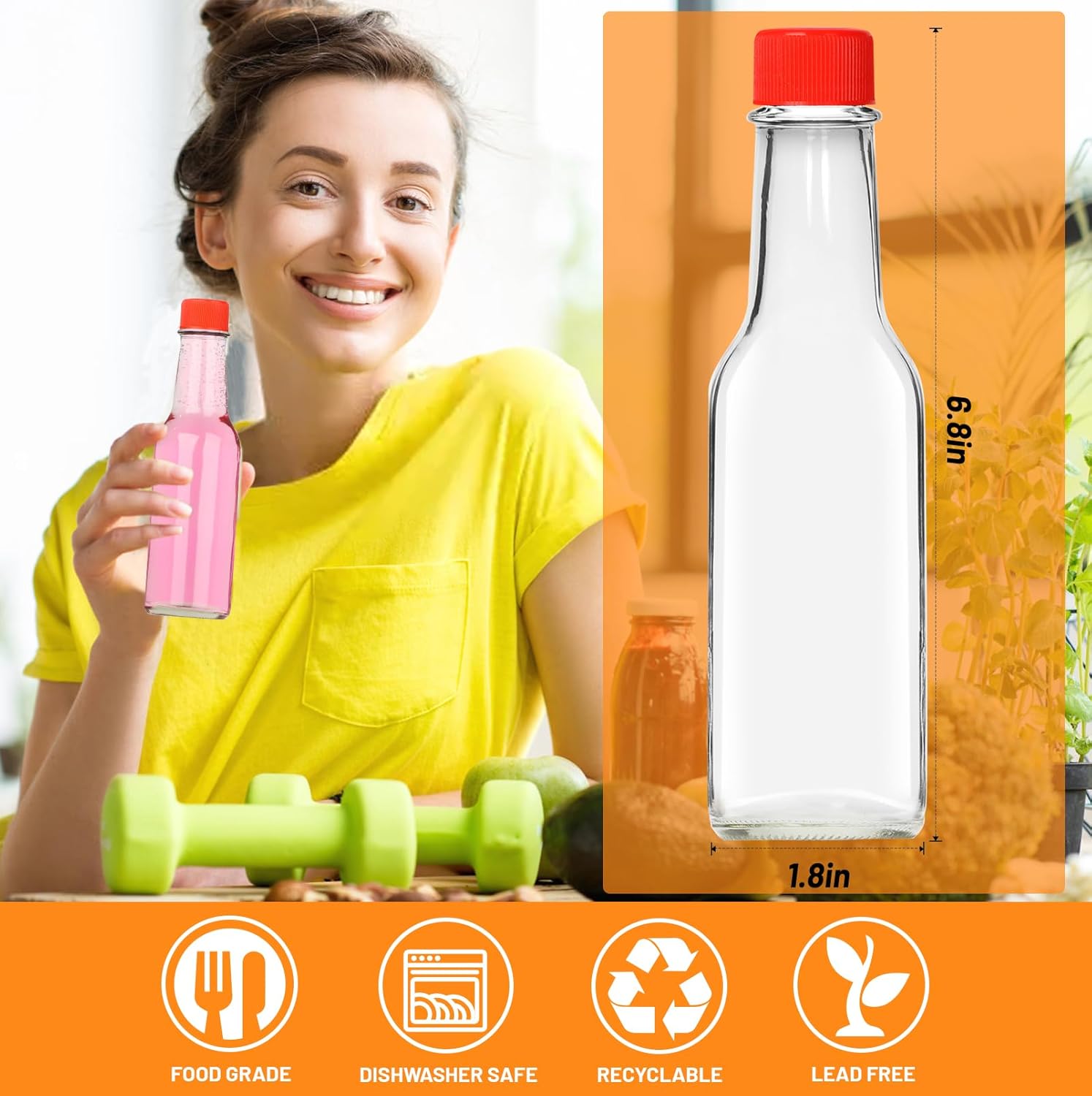 PREMIUM QUALITY GLASS: These 5 oz woozy bottles are made of thick, crystal-clear BPA-free glass for durability and reuse the transparent design lets you easily check contents while storing sauces, dressings, or beverages