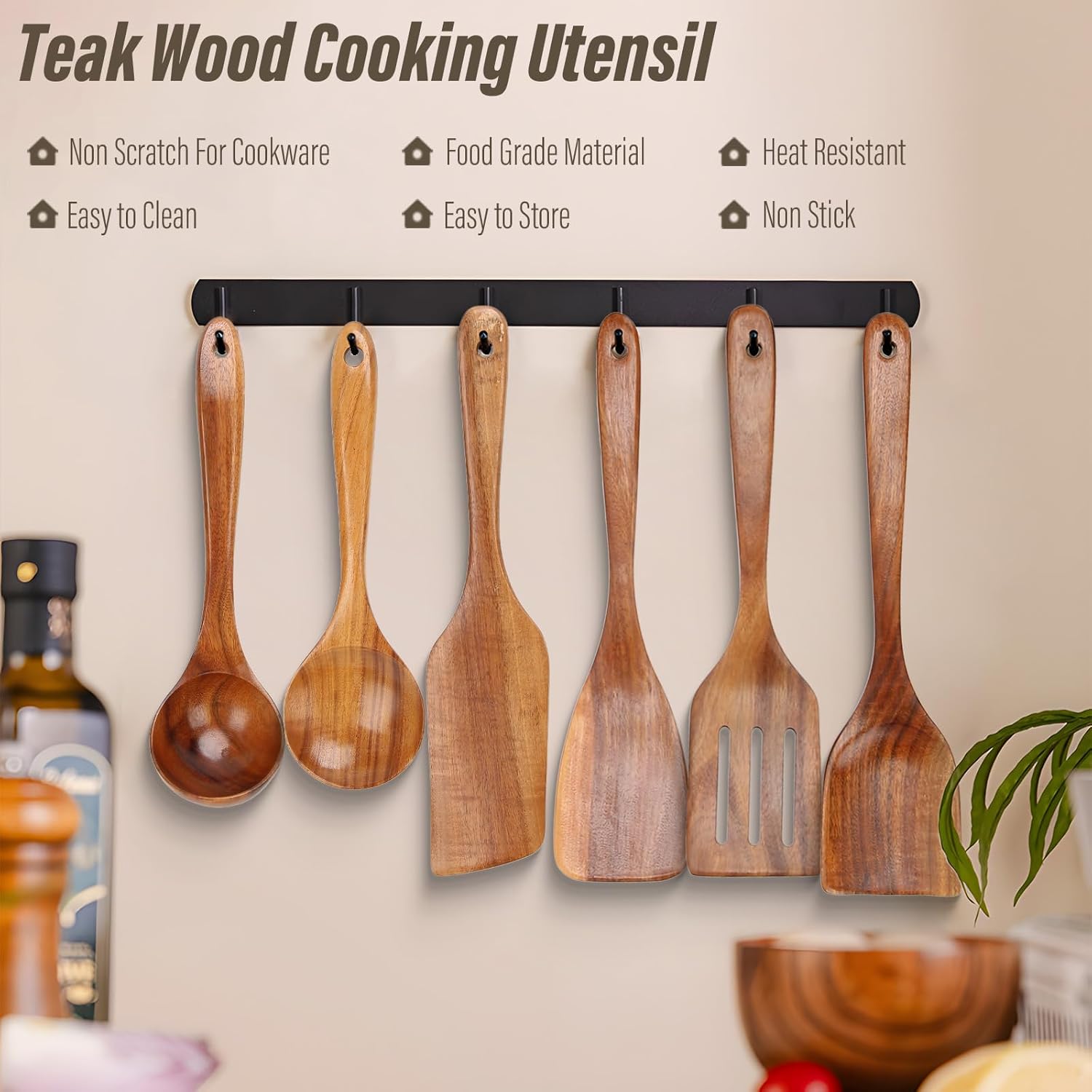 Eco-Friendly Wooden Spoons for Cooking: Made from durable, BPA-free teak wood, these wooden cooking utensils are heat-resistant, gentle on cookware, and perfect for stirring, frying, and serving without scratching your pots and pans