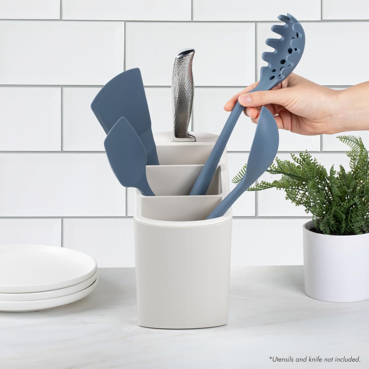 Angled Utensil Holder for Countertop | Space-Saving Kitchen Organizer for Large & Small Utensils with Knife Holder | Cooking Utensil Caddy with Spoon Rest | Kitchen Essentials Under Cabinet Organizer