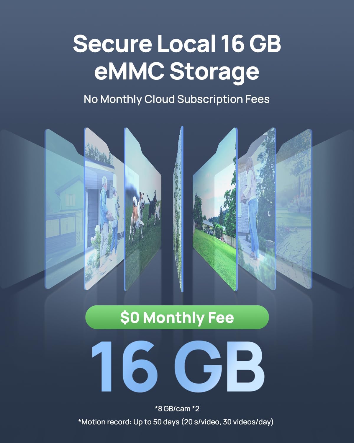 【8GB eMMC Storage】Unlock effortless storage with Lucio’s 8GB eMMC, capable of holding 50 days of playback. Eliminating the need for a hub or monthly fees—your memories are secure and accessible, saving you data and money.★Please note that it only supports 2.4GHz WiFi, not 5G wifi, like most cameras on the market!!!★