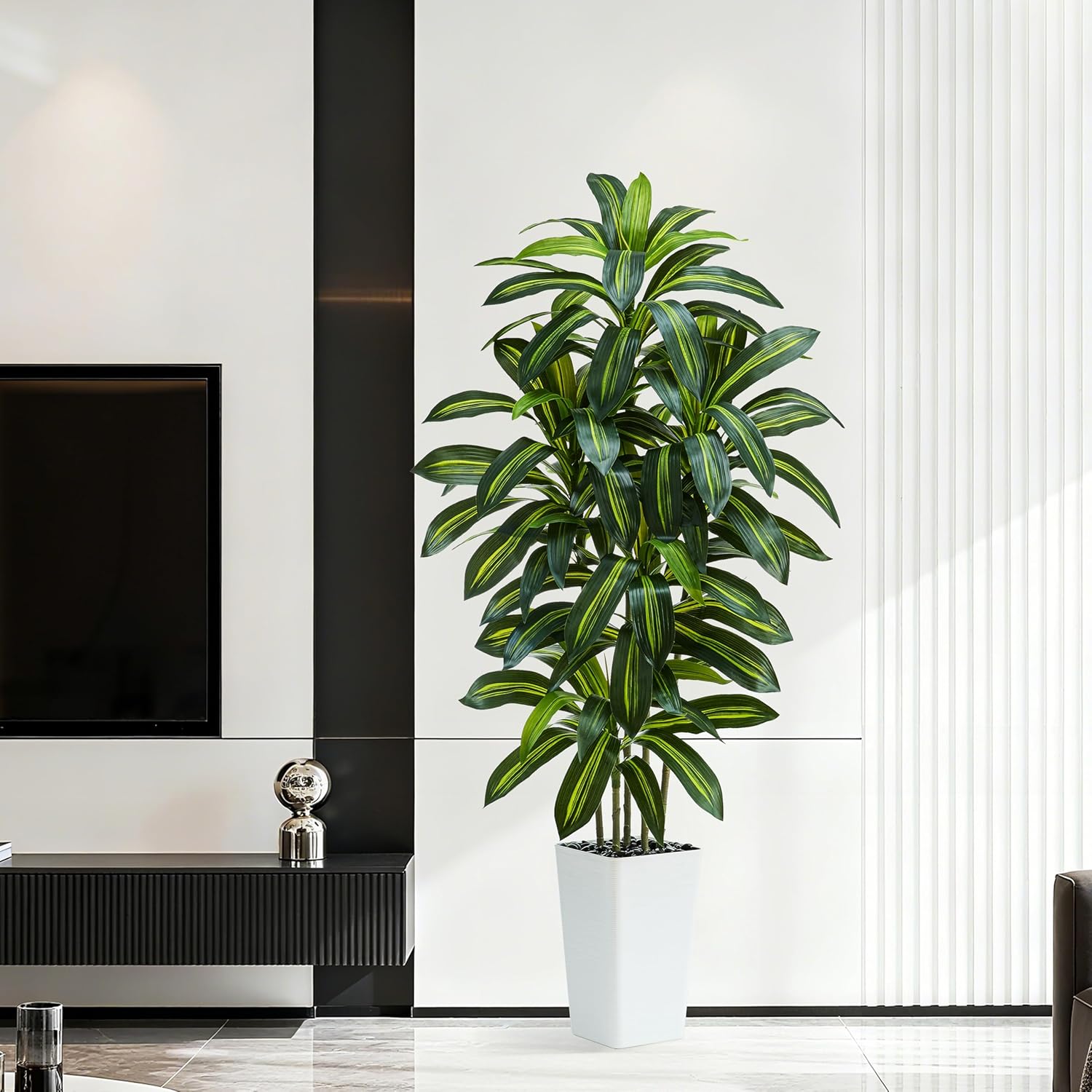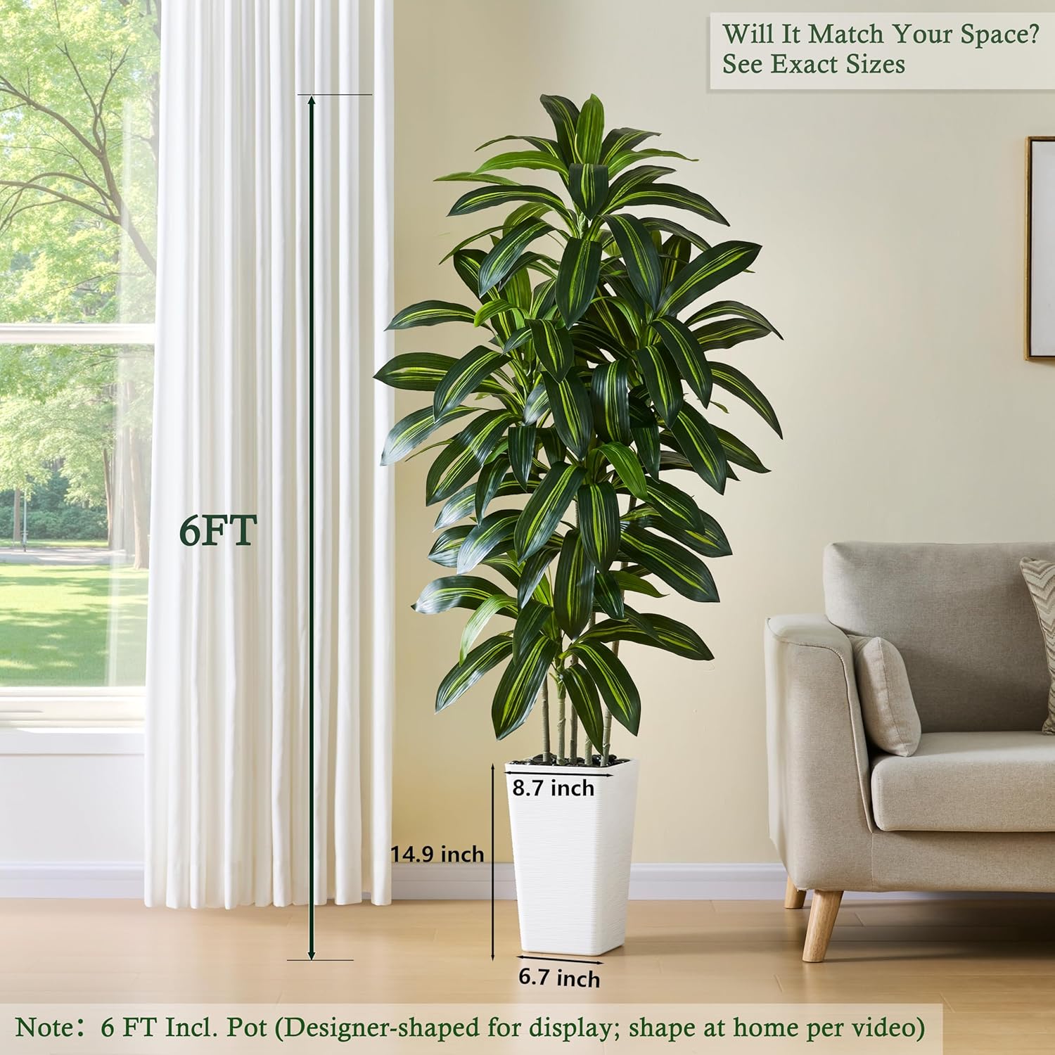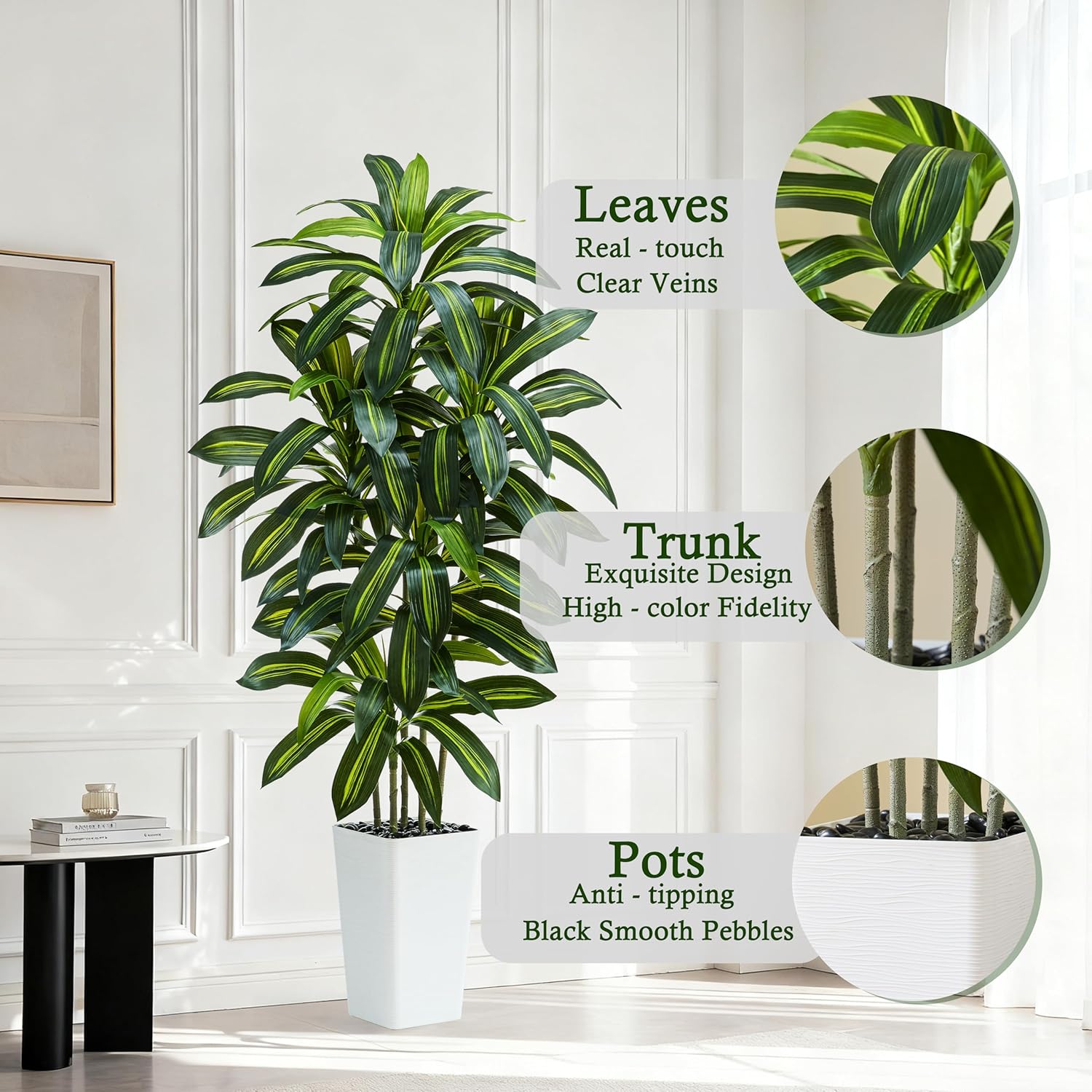 [Durable Build. Thoughtfully Made.] Built with quality materials chosen for long-term indoor use, this fake dracaena plant is made to last. Unlike flimsy alternatives,our fake plant features fade-resistant, water-repellent components that help maintain its vibrant look and clean feel over time. No shedding leaves, no odd odors—just a consistently neat and polished appearance that enhances any space with confidence. Designed to deliver both visual appeal and peace of mind from the ground up.