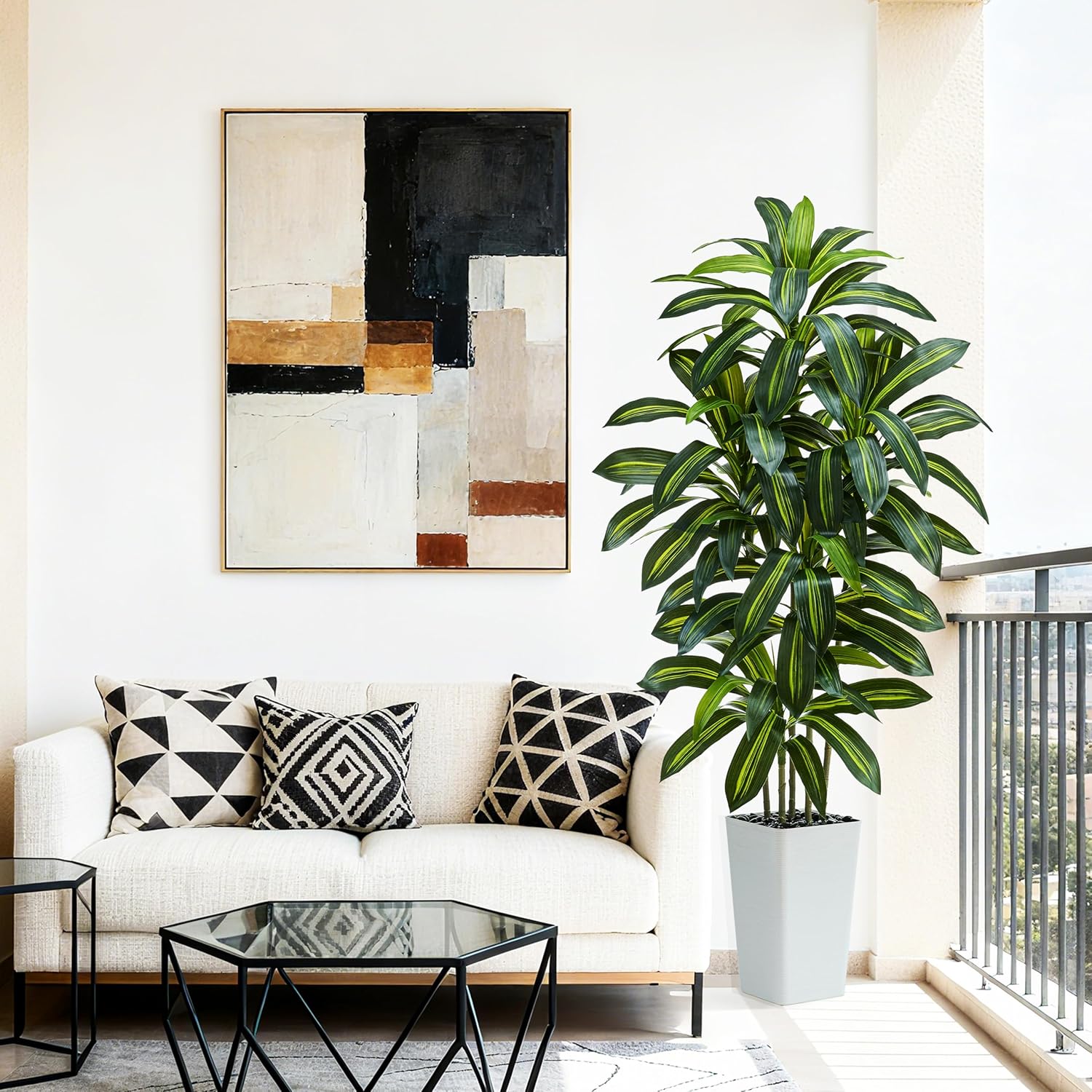 [Realistic Form With Elevated Elegance] This artificial dracaena tree Xmas gift captures the ideal balance of elegance and lifelike authenticity. Each branch is meticulously crafted and arranged to mimic the natural, flowing growth of a real tree, while the silk-touch leaves showcase intricate veins and subtle color variations that add depth and realism. Together, these elements create a stunning faux plant that effortlessly elevates any home or office décor with lasting charm and natural grace.