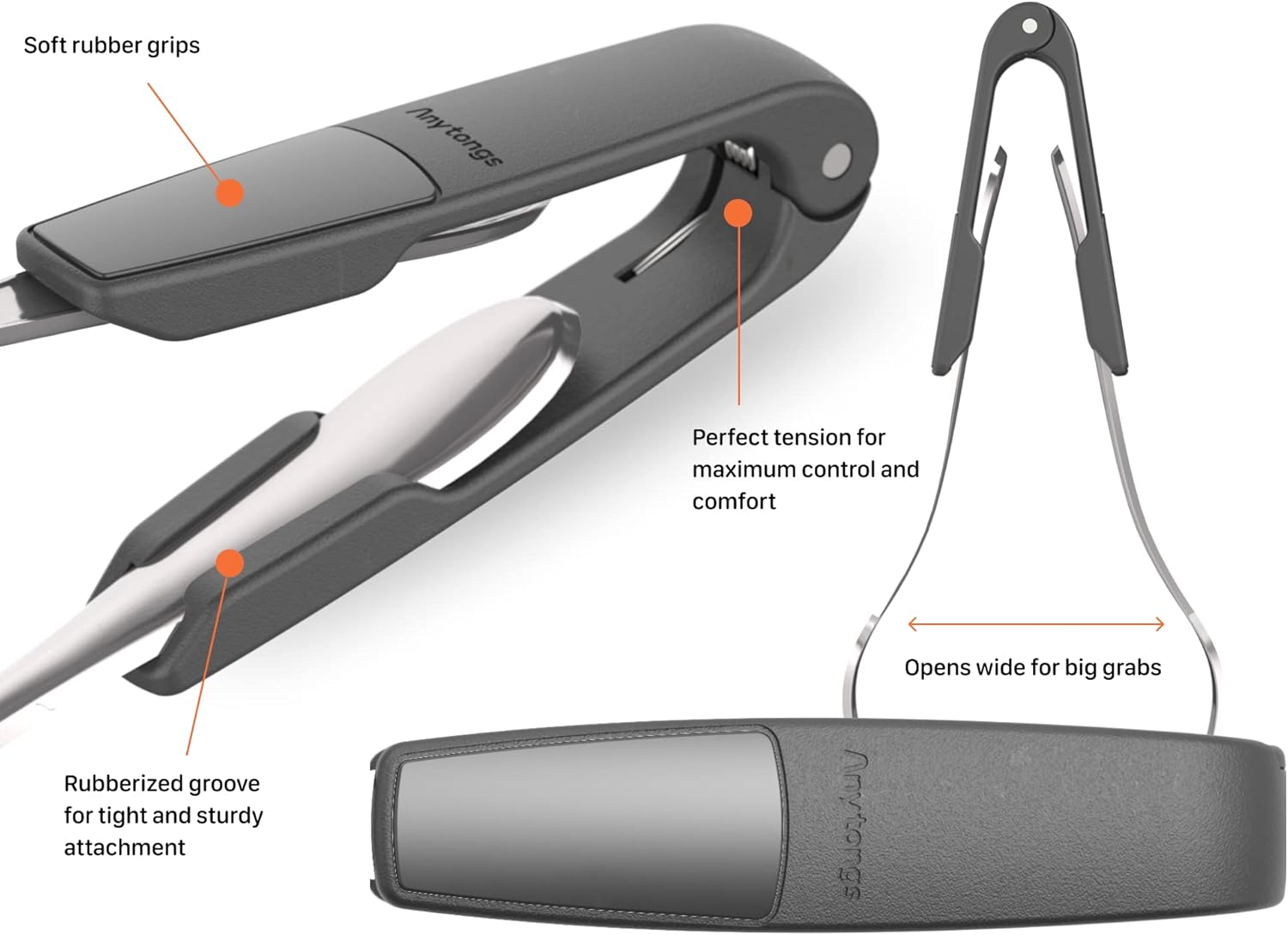 Quick highlights Always have fresh tongs when you need them Reduce clutter and save space No more cross-contaminating food using the same tongs Super small and compact to take with you Over 300% funded on Kickstarter!