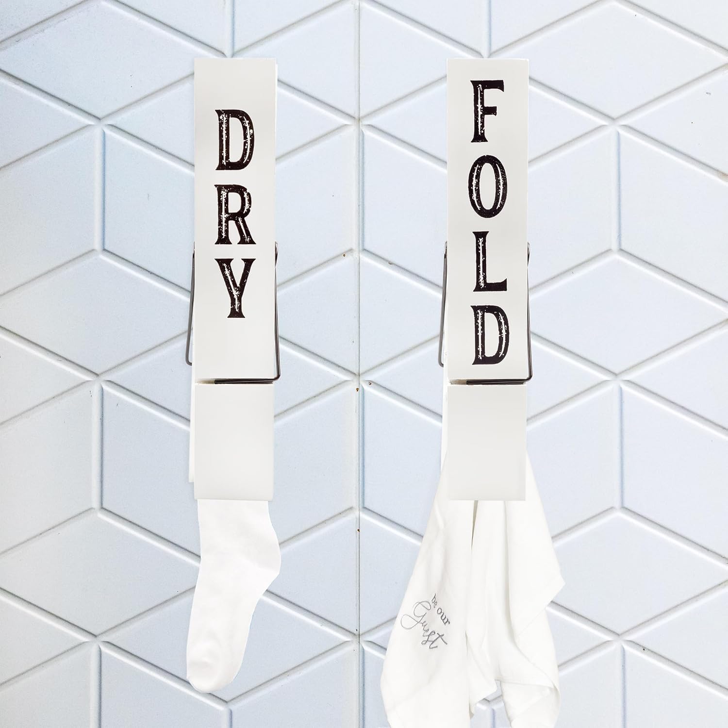 These signs offer a clean white finish and bold lettering that fits a range of laundry room styles.