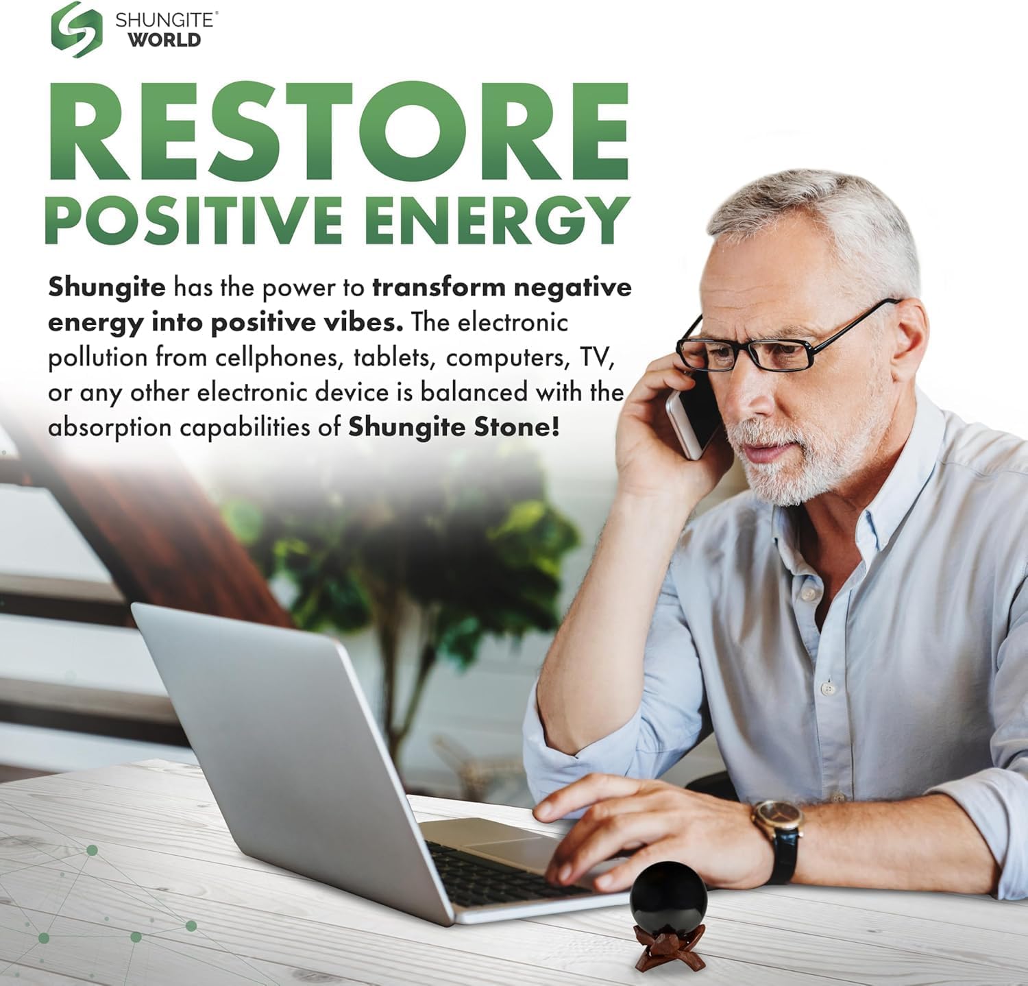 Placements: Put your shungite ball around the house – next to the TV, laptop computer, modem, wifi adapter, router or any devices; in your bedroom or workspace; anywhere you feel need for balancing your energy from negative frequency and aura cleanse