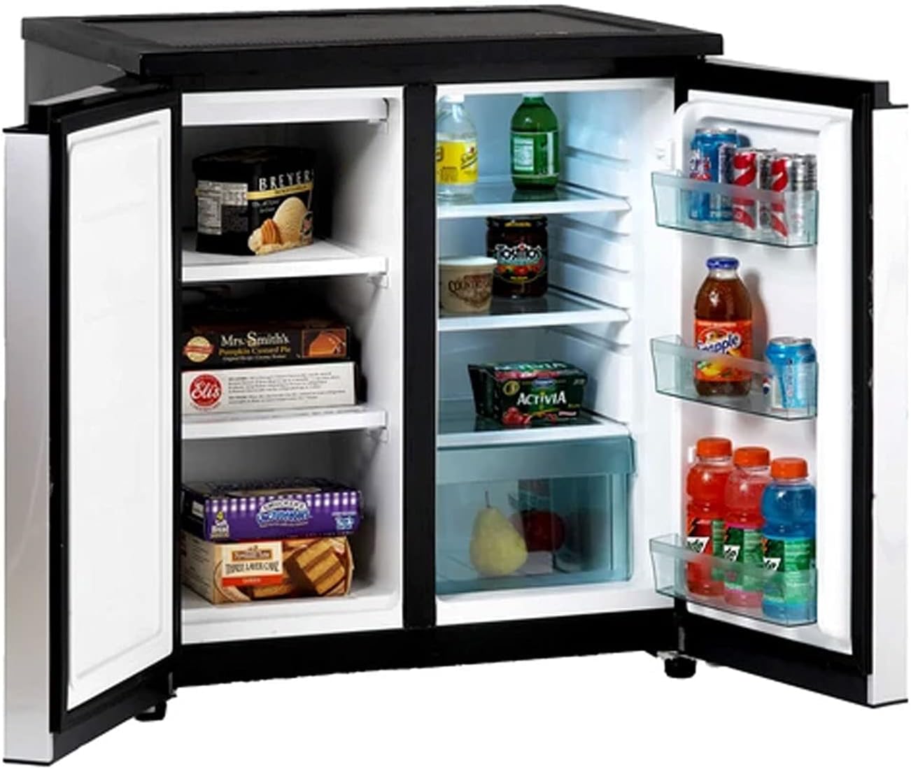 SPACIOUS 5.5 CU. FT. SIDE-BY-SIDE DESIGN: Perfect for offices, dorms, bedrooms, bars, and small spaces, offering both refrigerator and freezer sections for convenient storage.
