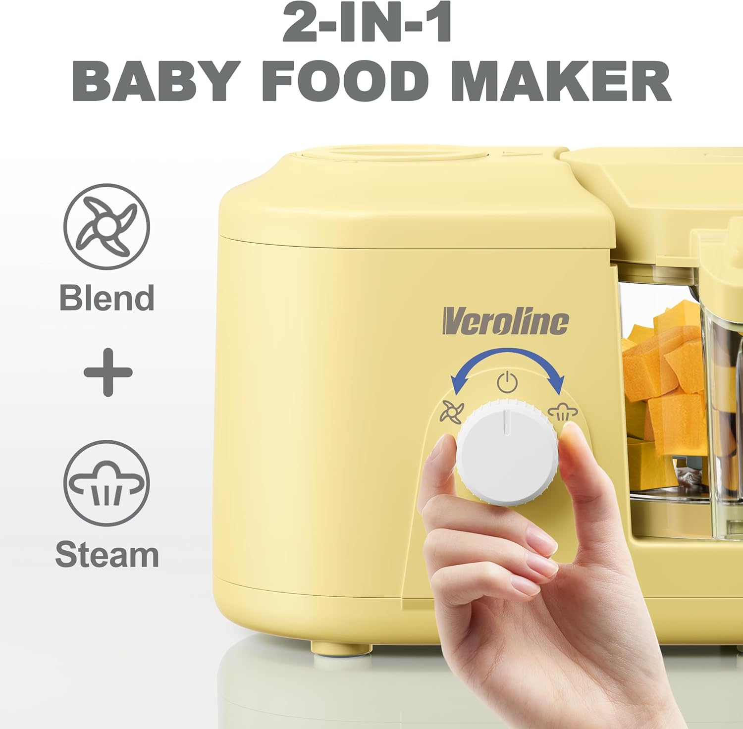 Baby Food Maker, One Button Rotate Control Baby Food Processor, Baby Puree Maker with Steaming and Grinding Functions, Baby Food Steamer and Blender (Yellow)