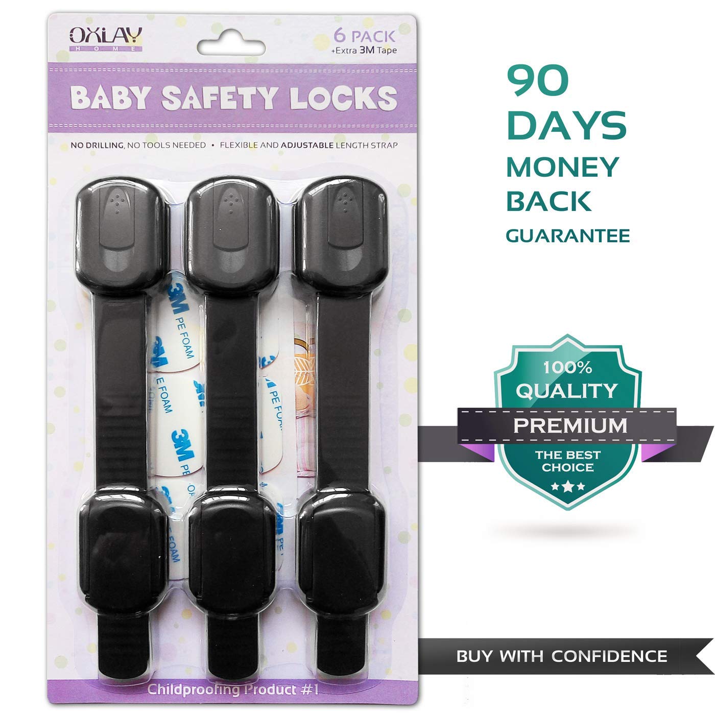 Oxlay Baby Safety Locks are the easiest way to secure cabinets and drawers. Two anchor points are needed for these adhesive locks in order to stick to the surface of the cabinets. Both anchors are joined by a flexible strap which prevents your children from pulling the cabinet open.