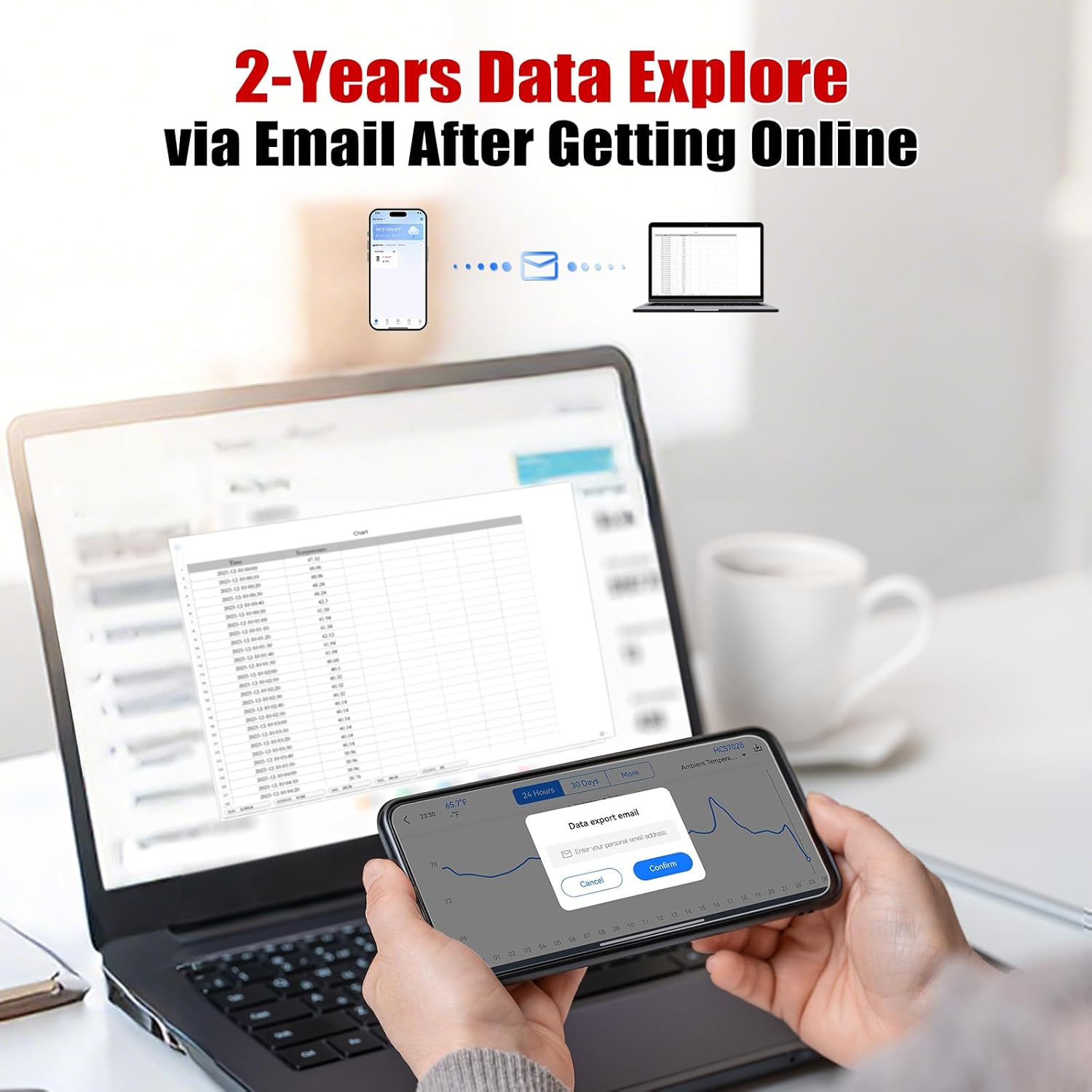 Offline Data Storage & Auto-Sync:Even during disconnection, this Bluetooth temperature sensor stores up to 12 months of data, seamlessly syncing once reconnected.