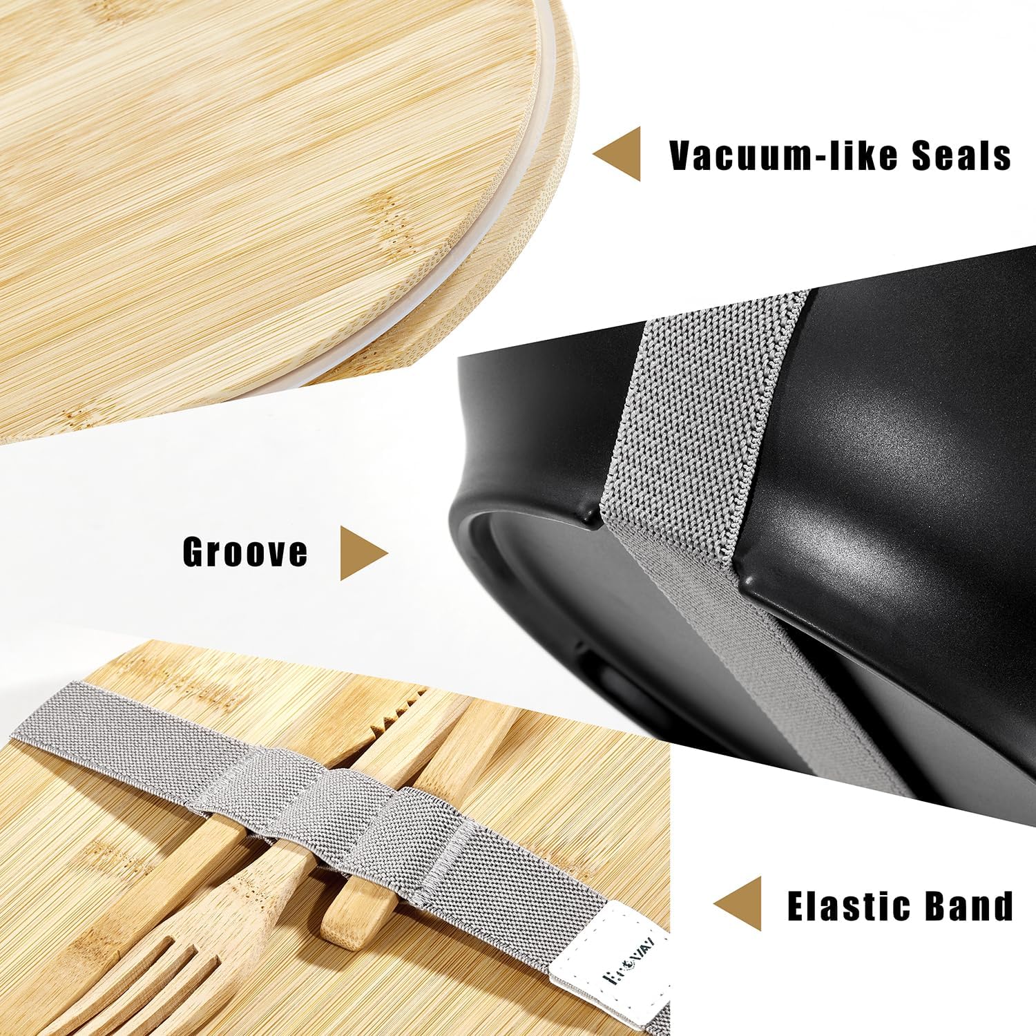 ECO-FRIENDLY MATERIAL: Biodegradable fiber bamboo Large Bowl and Bento Tray, natural bamboo lid and utensils, stainless steel condiment container with leak-proof silicone lid, BPA/BPS-free and reusable. Fridge and freezer-friendly. The natural bamboo finish adds a touch of elegance and sophistication to the bowl, making it a stylish addition to any kitchen or dining table