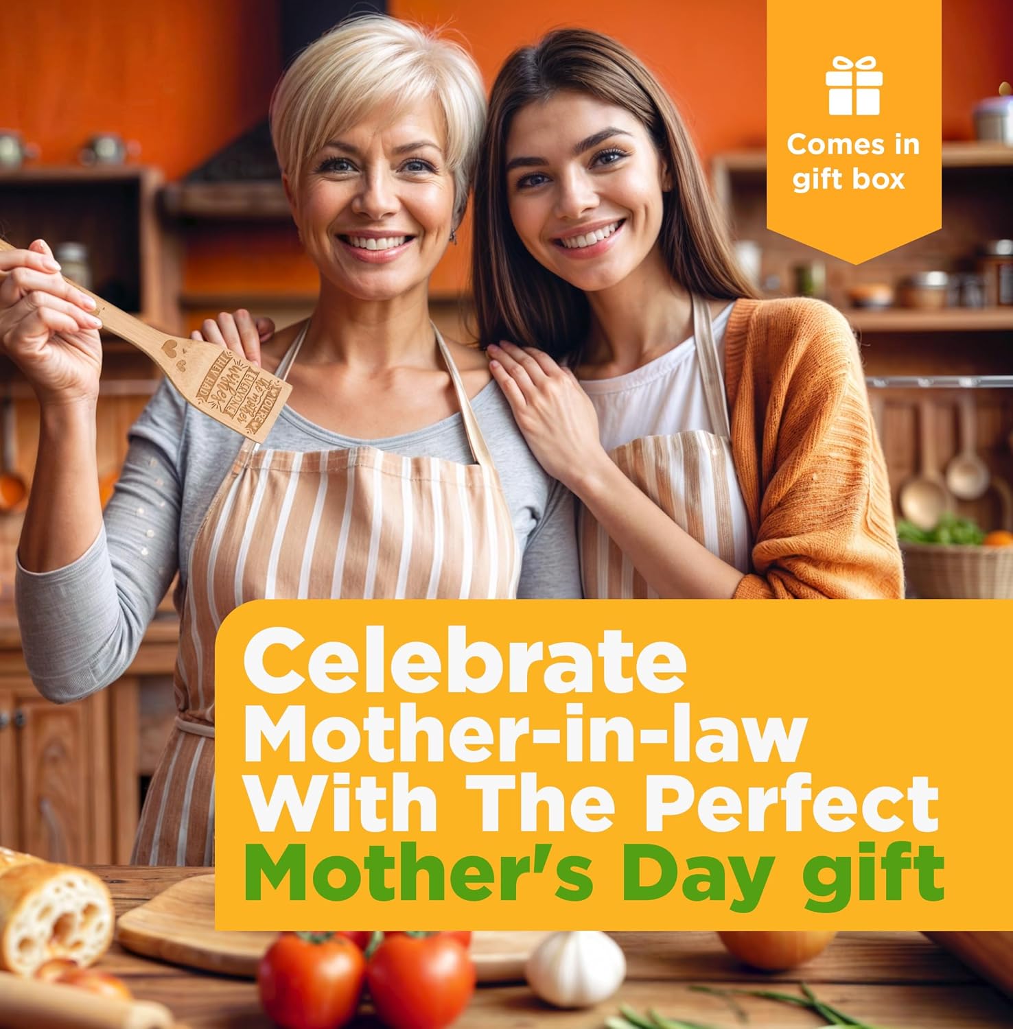 Functional and Stylish — Beyond its role as a reliable wooden cooking utensils set, this versatile mother days gift for wife doubles as a stylish serving platter. Picture elegantly arranged cheeses, appetizers, or a carved roast showcased on its surface of the unique best mothers day gifts for daughters from mom. The three accompanying wooden spoons for cooking set with mother themed bamboo cutting board set, with their blend of appeal and functionality, add a touch of grace to serving.