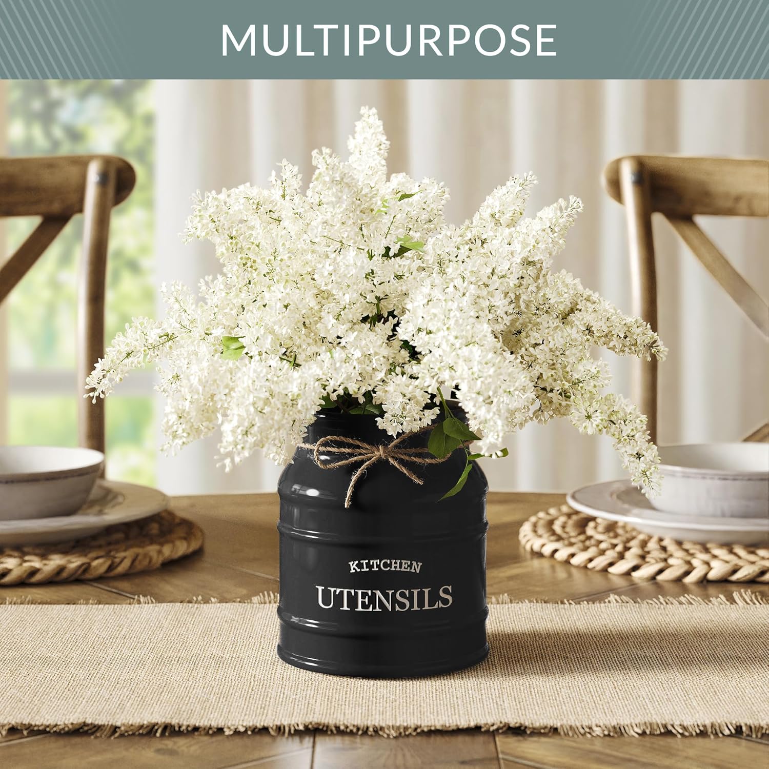 Vintage Kitchen Decor – This large utensil holder for kitchen counter will make a chic French country accent in your home. The porcelain-like finish on the cooking utensil holder gives it a rustic feel. A charming black utensil holder.