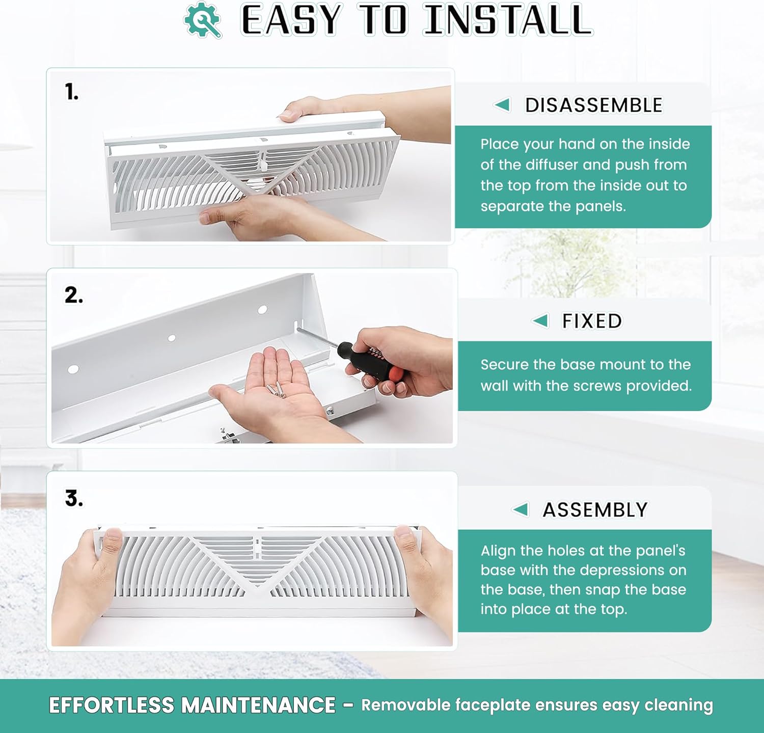5. Wide Application for Homes and Offices: This versatile register vent cover is ideal for use in a variety of settings, including residential homes, offices, and commercial spaces. Whether you’re upgrading a single room or outfitting multiple rooms, the 2-pack, 3-pack, and 4-pack options allow you to meet your needs. Perfect for bedrooms, living rooms, kitchens, and hallways, this baseboard diffuser ensures efficient airflow and adds a modern touch to any room in your home or workplace.