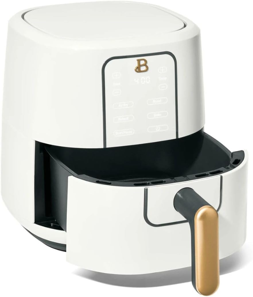 The Beautiful 3 Quart Digital Air Fryer, featuring TurboCrisp Technology, delivers delicious, crispy results with little to no oil. Its sleek, compact design fits any kitchen, offering both style and functionality.