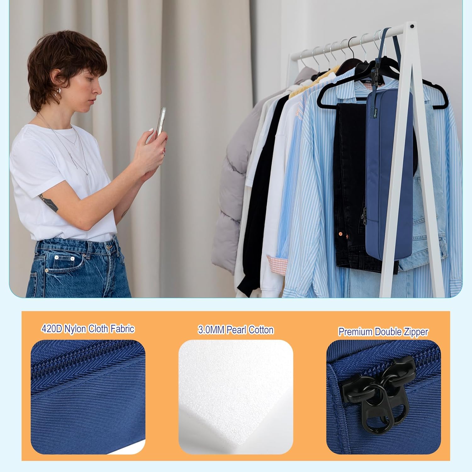 Beautyflier Portable Steamer Bag for NORI Press Travel Steam Iron, Travel Carrying Bag for Handheld Iron, Handheld Steamer Case Organizer with Hanging Buckle Strap, Fits Travel, Bag Only (Dark Blue)