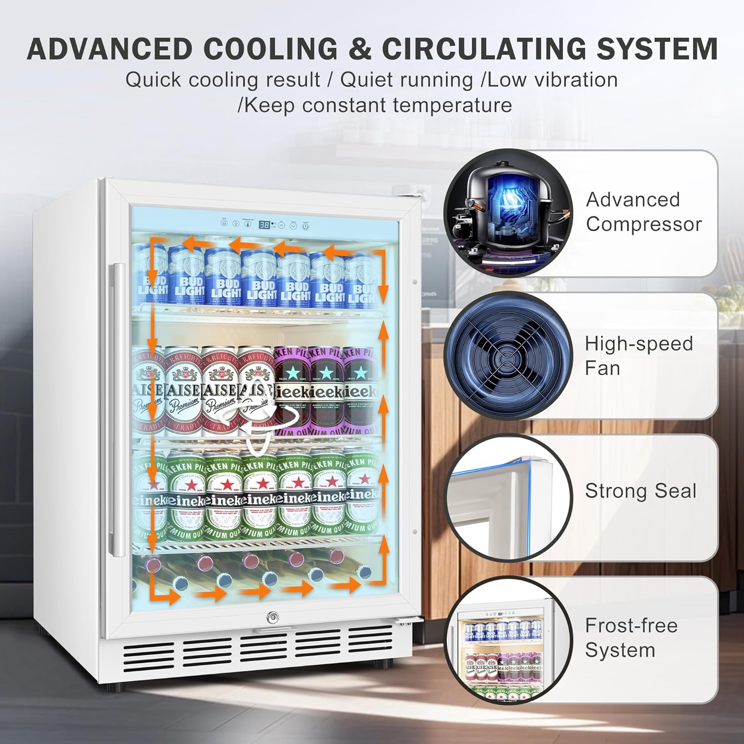 Versatile Beverage Storage: The 24 inch beverage refrigerator or undercounter beverage refrigerator offers a generous 4.9 cu. ft capacity, accommodating up to 150 cans, making it the perfect cooler for your favorite drinks, whether it’s beer, soda, or beverage