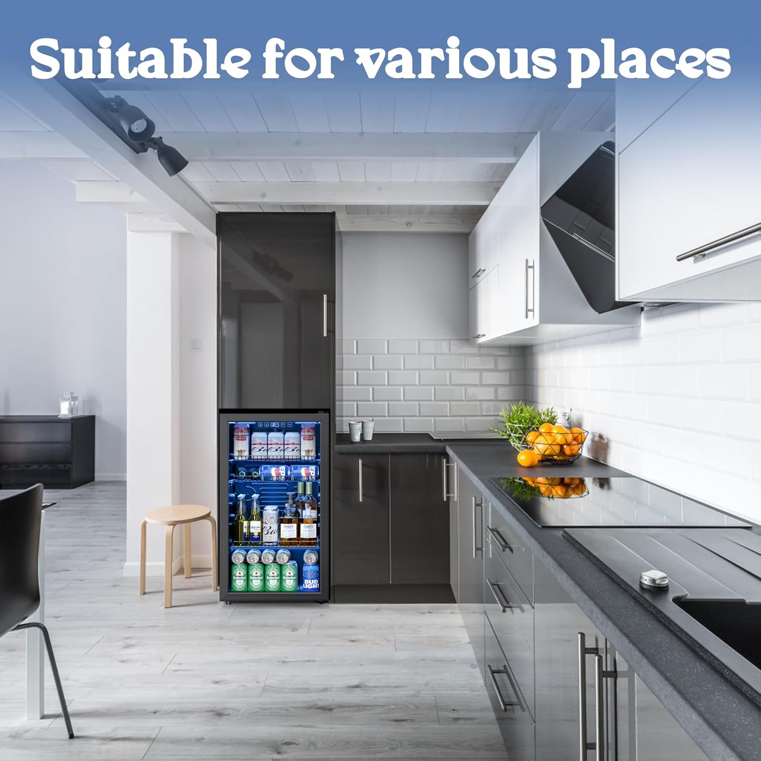 𝗙𝗹𝗲𝘅𝗶𝗯𝗹𝗲 𝗣𝗹𝗮𝗰𝗲𝗺𝗲𝗻𝘁 𝗢𝗽𝘁𝗶𝗼𝗻𝘀: Measuring 18.5 x 17.5 x 36.7 inches, this beverage fridge is the ideal size to fit into a variety of spaces. Whether you choose to install it under your kitchen counter or place it as a standalone unit in your home, bar, office, RV, apartment, or dorm room, it effortlessly blends into any environment. For best results, we recommend keeping the fridge upright for at least 24 hours before your first use. This allows the cooling system to fully stabilize, ensuring that your drinks are chilled to perfection.