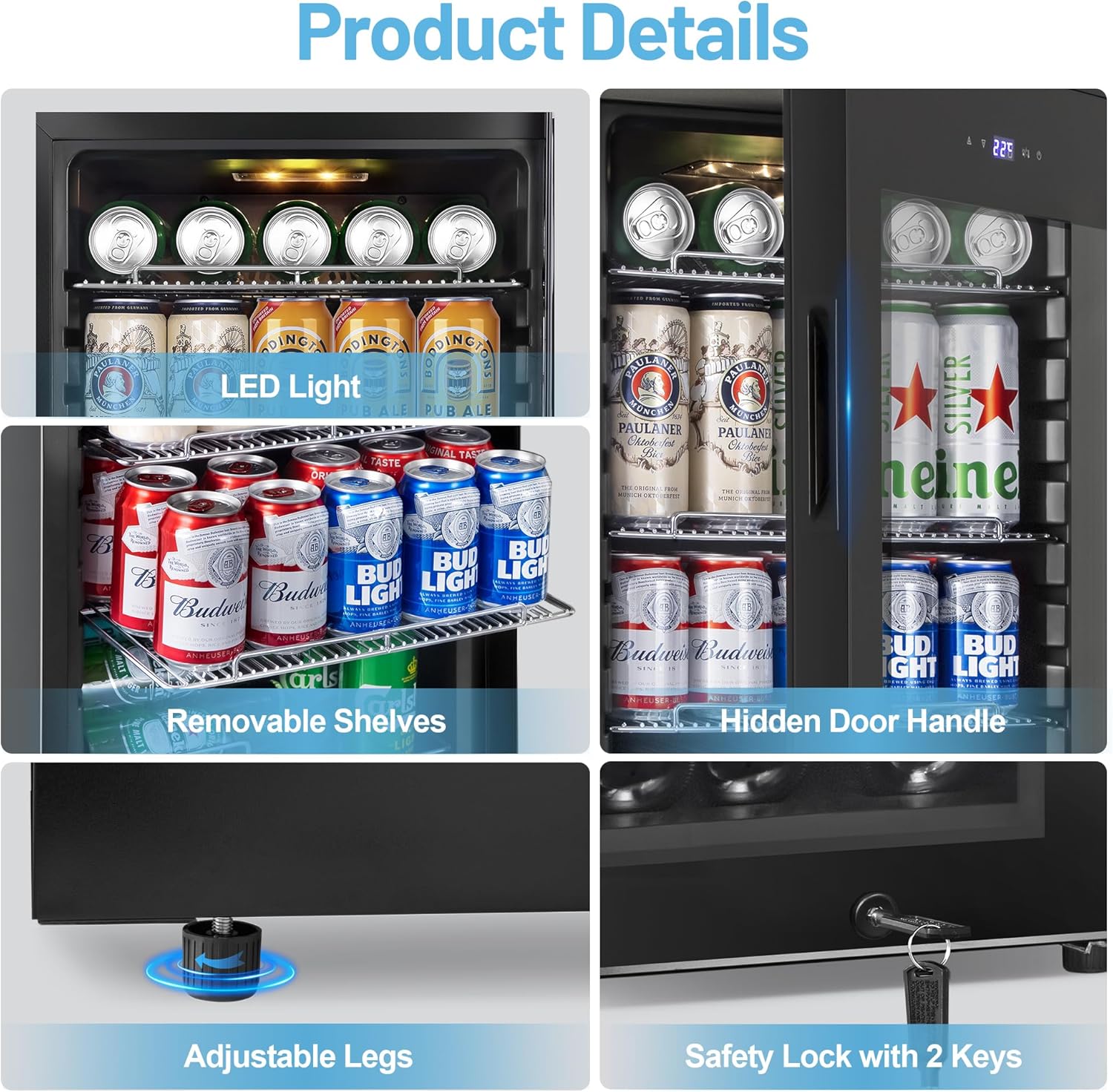 Intelligent Temperature Control: The beverage fridge has a digital thermostat display allowing you to monitor and adjust the temperature easily; The beverage cooler offers a temperature adjustable range from 37-65°F to meet your different needs
