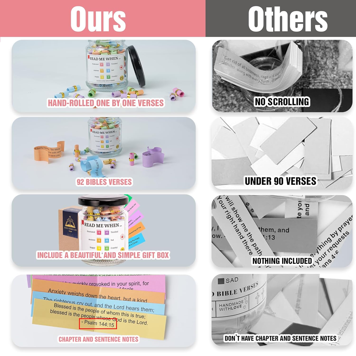 🙏 [92 Hand-Rolled Bible Verses] Each jar contains 92 scripture scrolls, individually rolled and tied with care, making it a meaningful choice for bible gifts for women or thoughtful gifts for women.